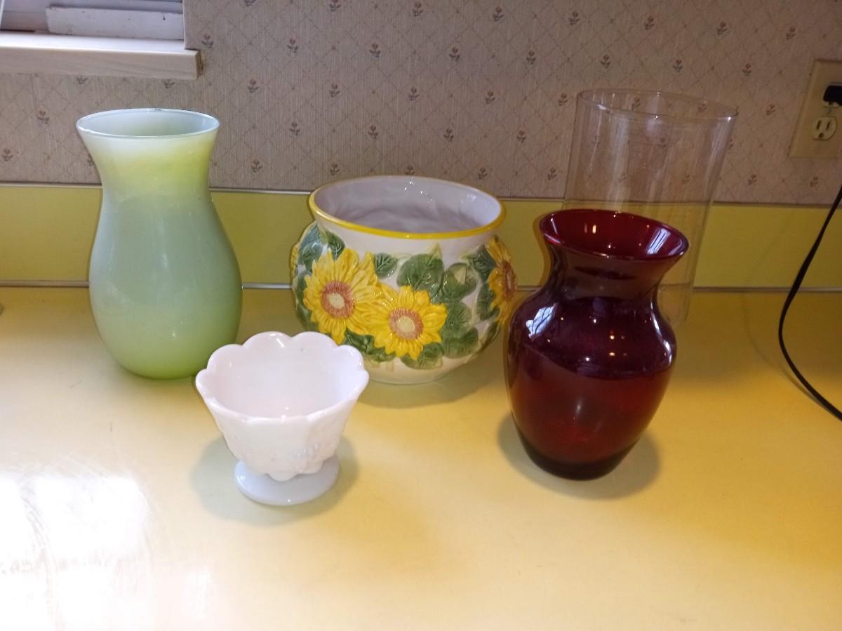 A COLLECTION OF FLOWER VASES AND PLANTERS