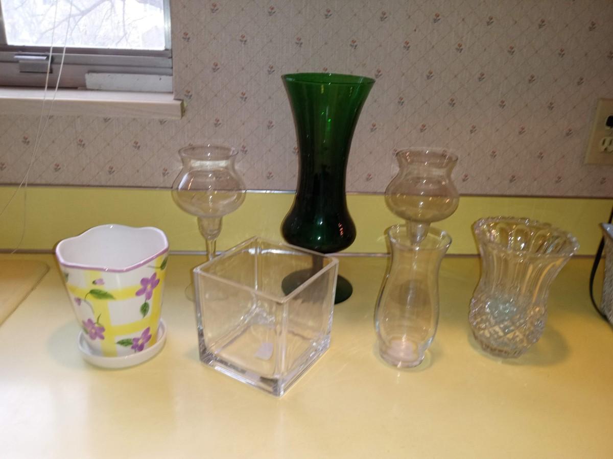 A COLLECTION OF GLASS VASES AND PLANTERS