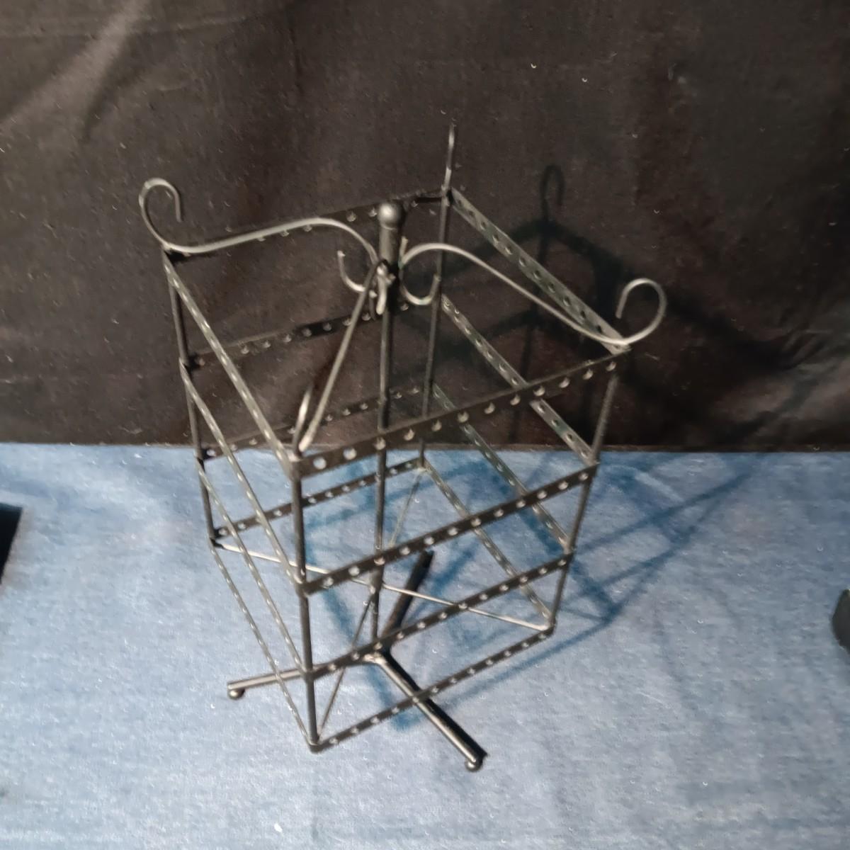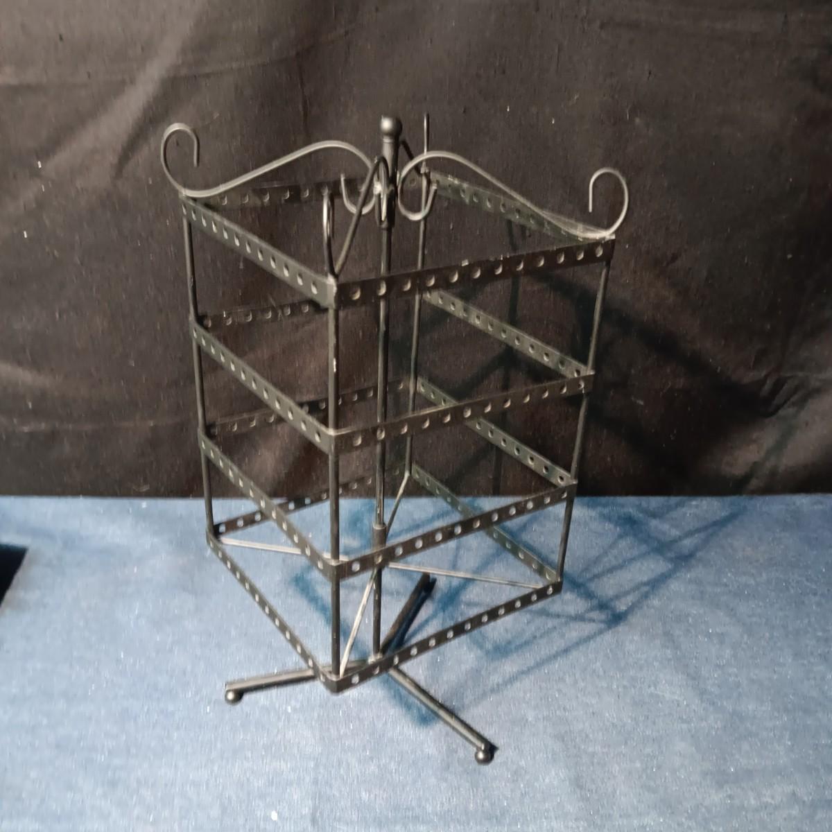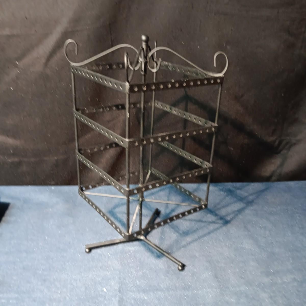A COLLECTION OF PIERCED EARRINGS AND A ROTATING EARRING HOLDER