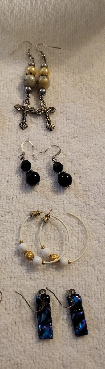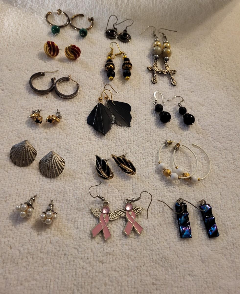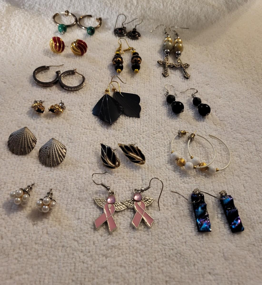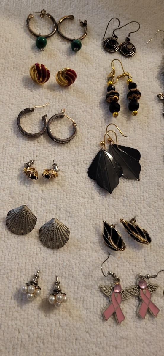 A COLLECTION OF PIERCED EARRINGS AND A ROTATING EARRING HOLDER