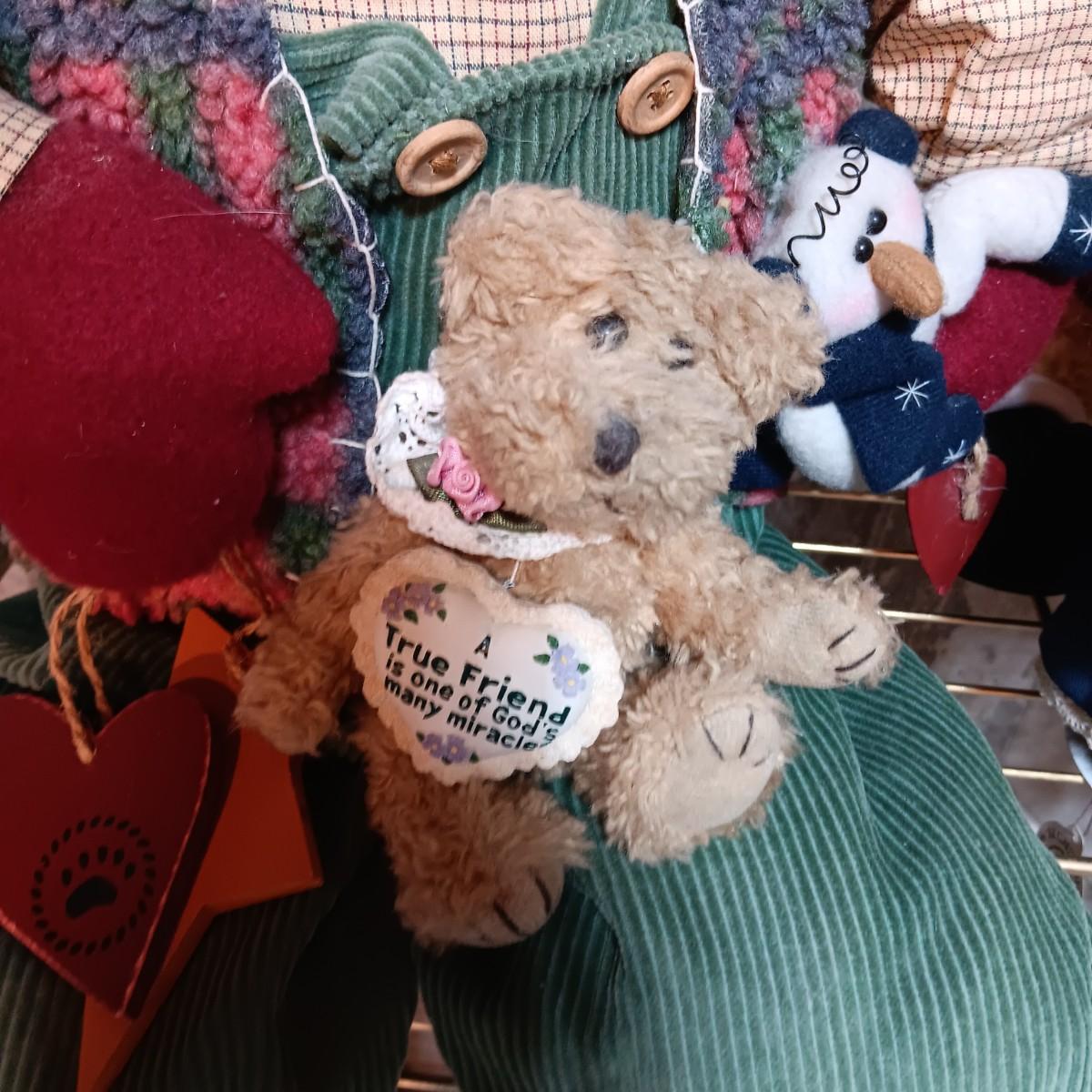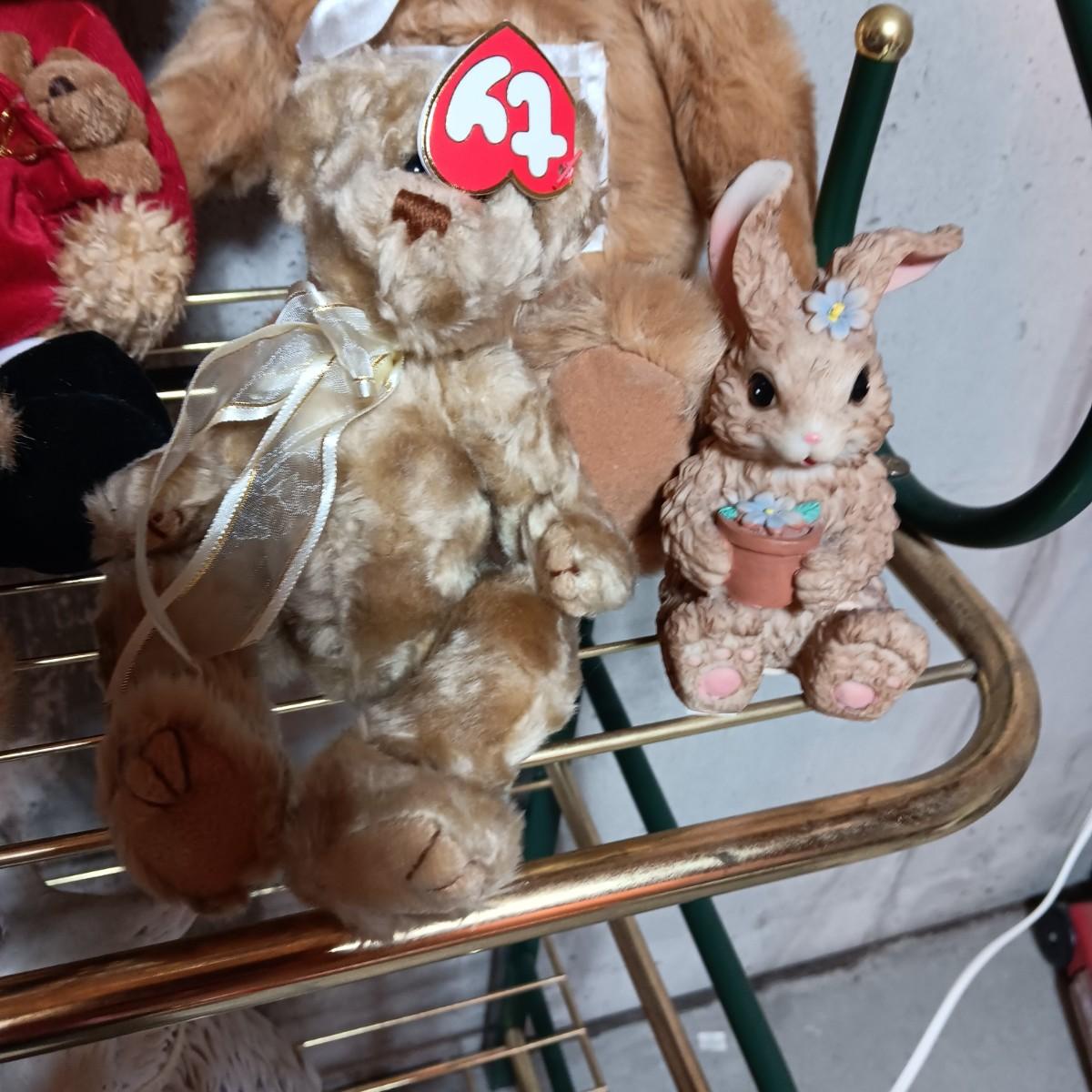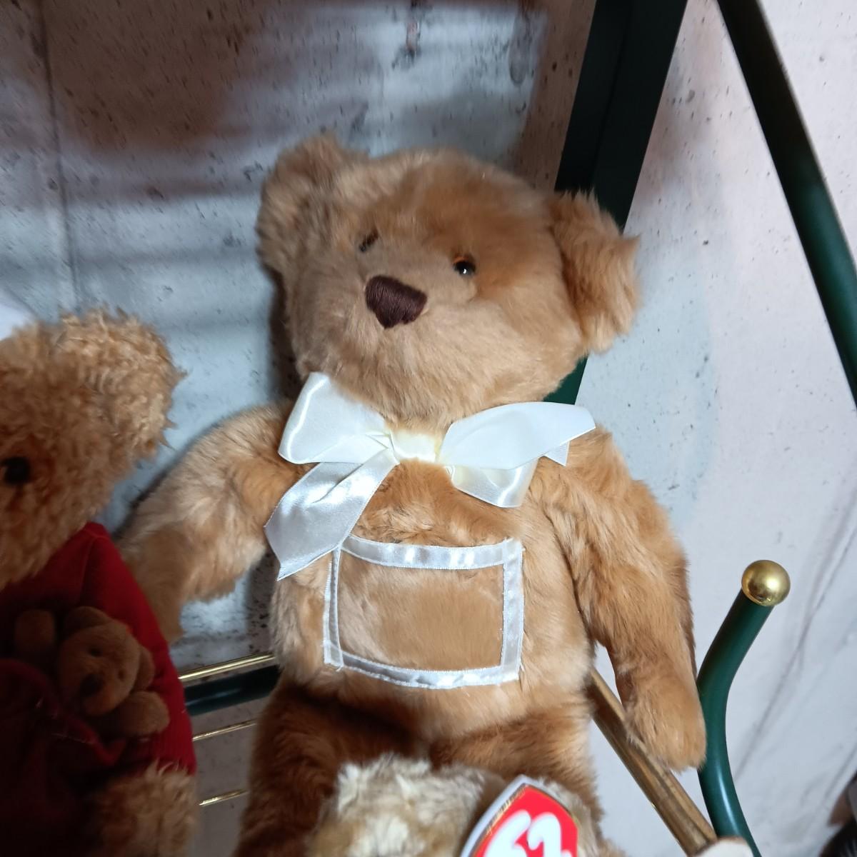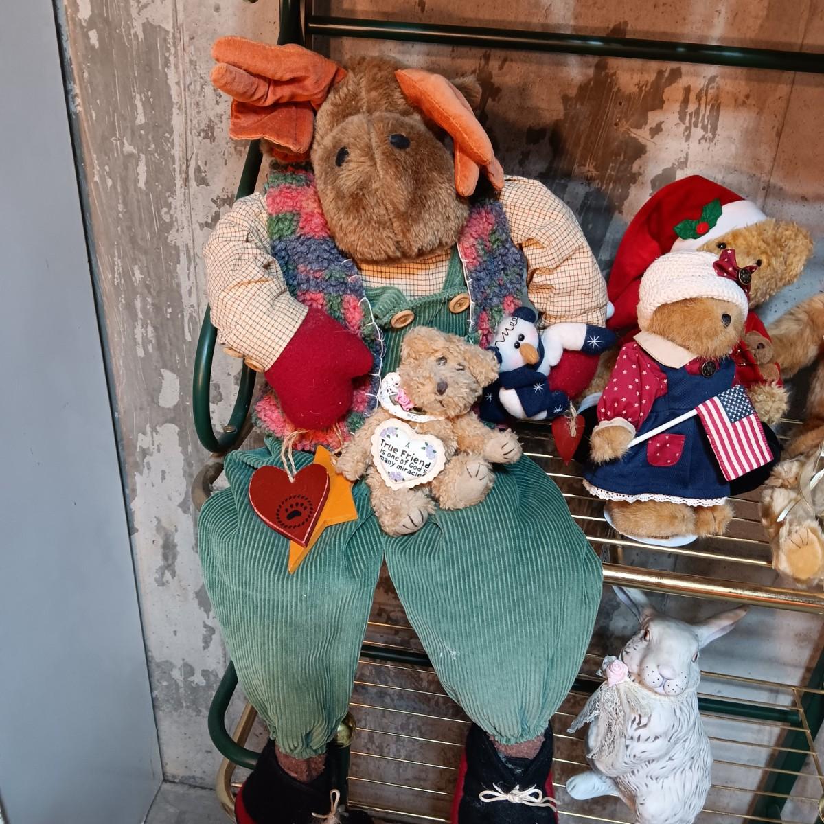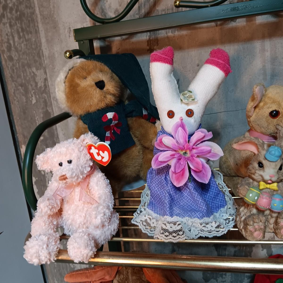 A COLLECTION OF PLUSH ANIMALS WITH A TOTE