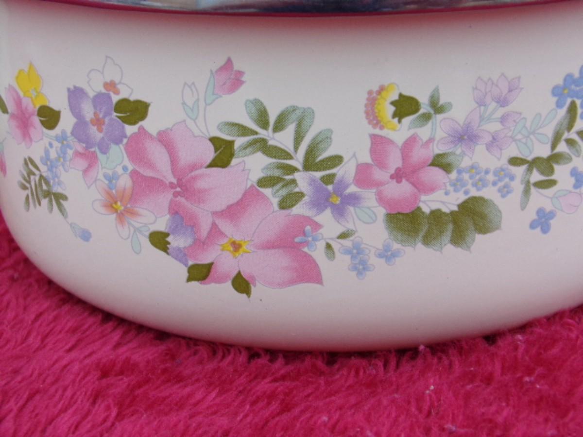 A couple of small porcelain steel nesting bowls w/chromed rims