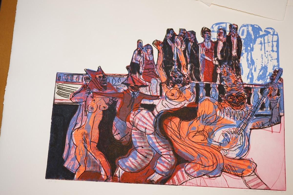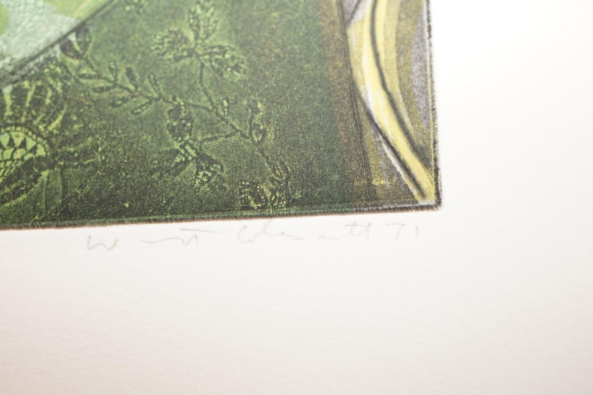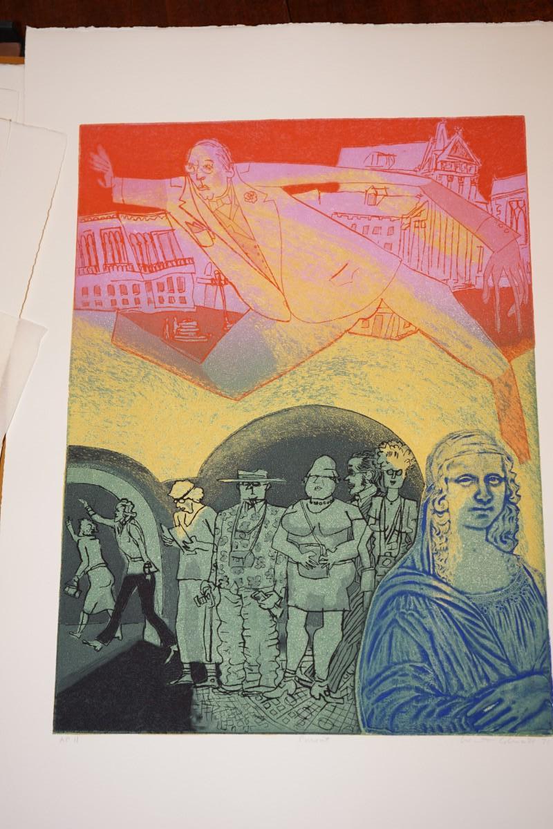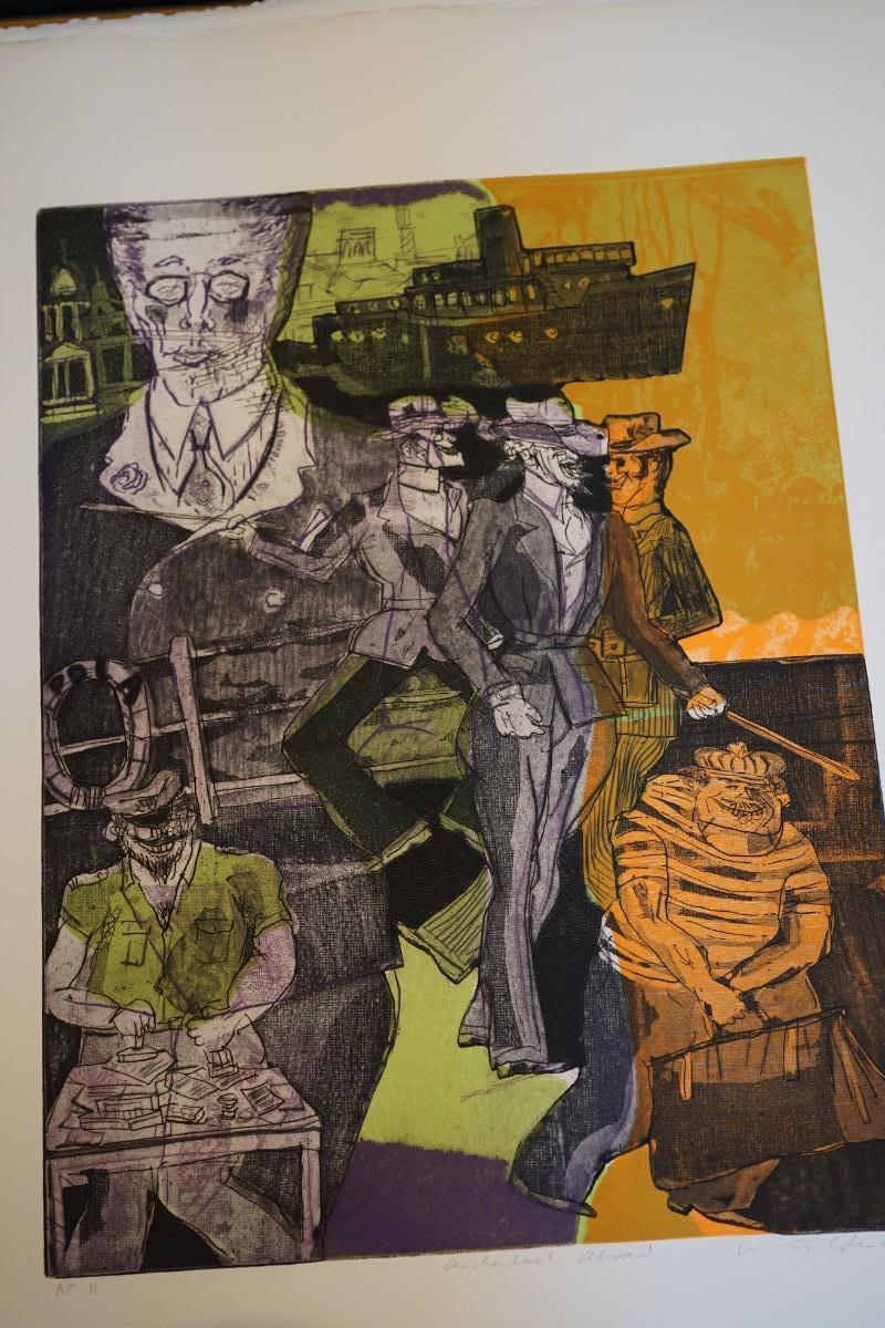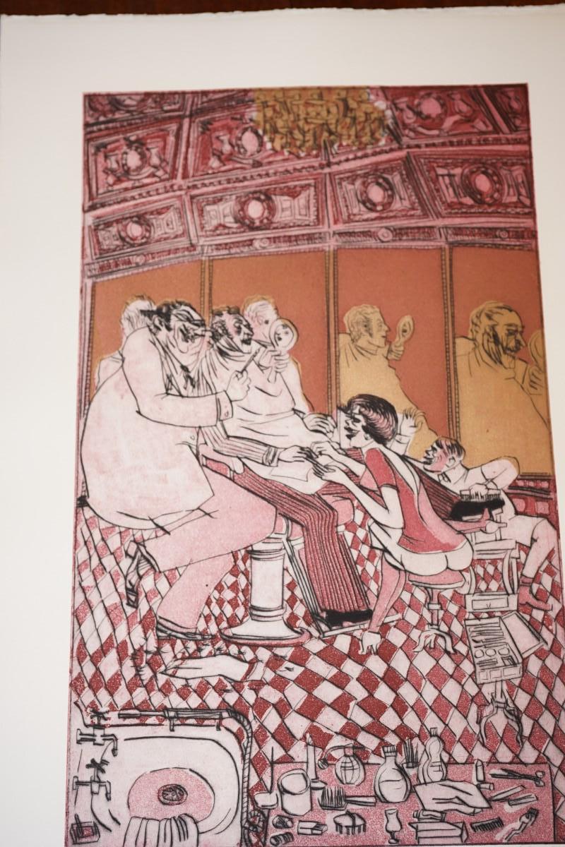 the gold leaf starts out this set in a box that has the titles and then each etching covered with parchment, unframed. signed AP 11