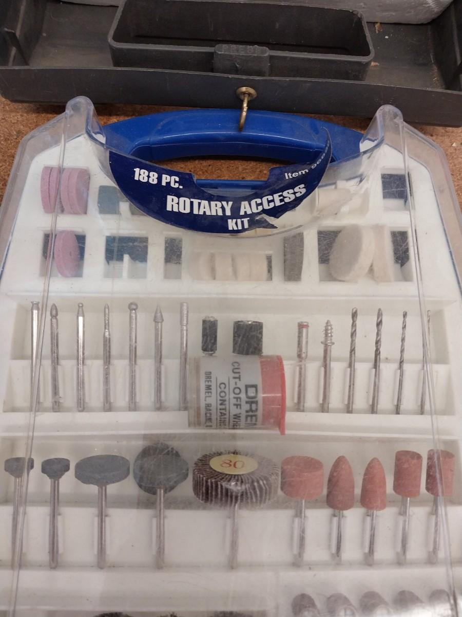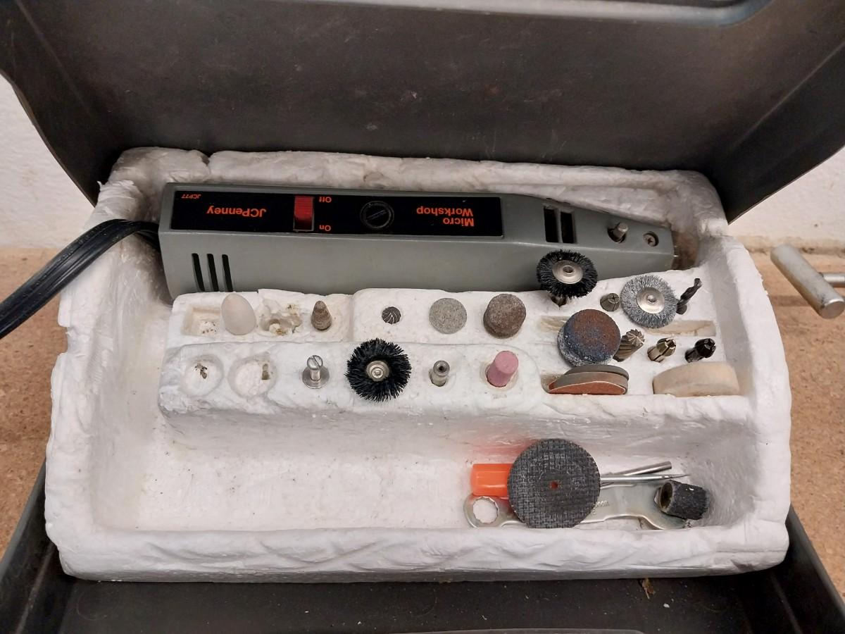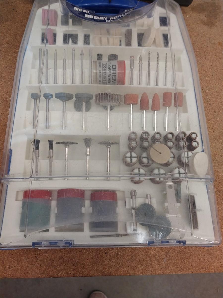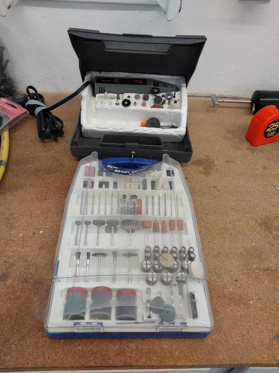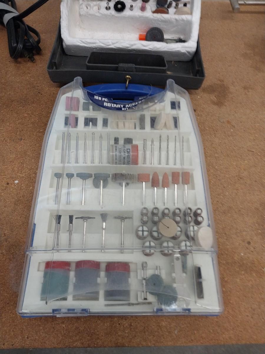 A DREMEL WITH MANY ATTACHMENTS