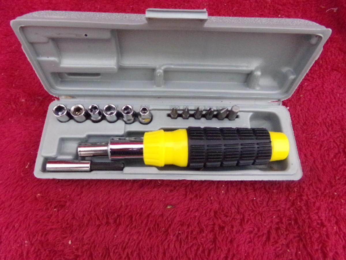 A driver set in case and a Rockwell calculator. Both in the OEM boxes.