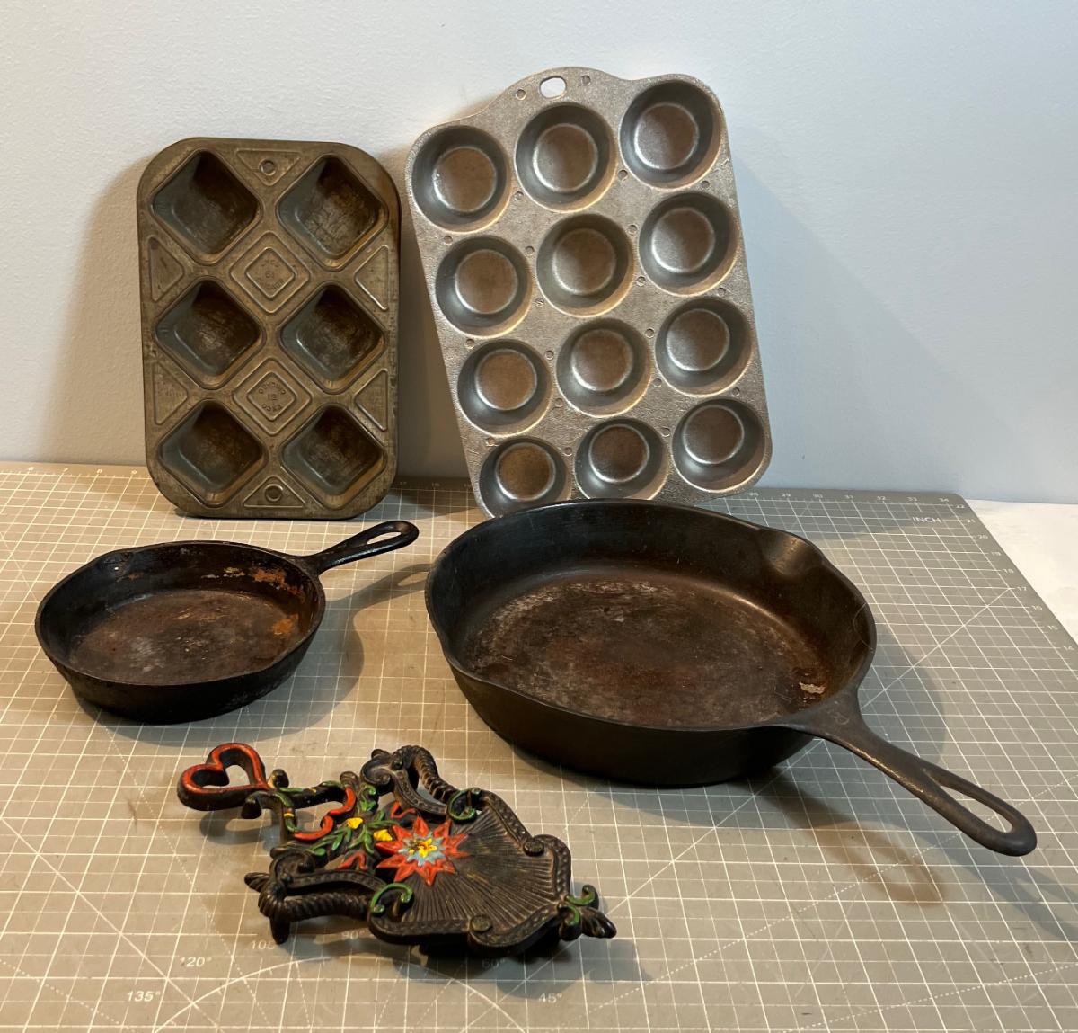 A Few Pieces of Cast Iron and 2 Muffin Aluminum and Steel