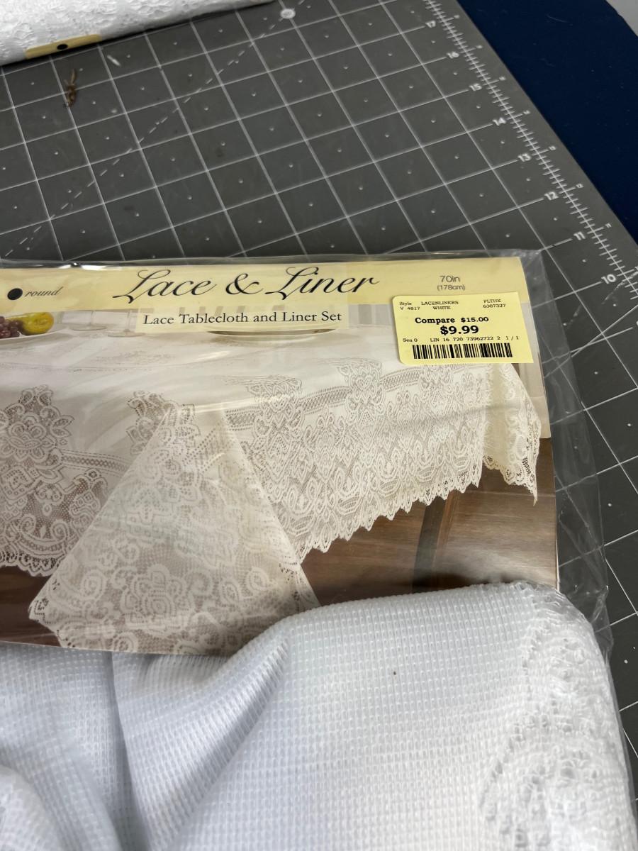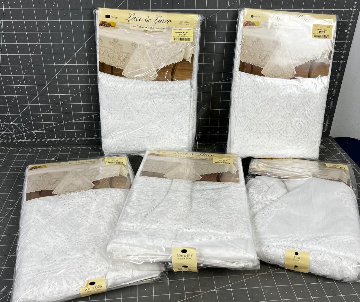 A few Round Tables, 2 oval and an Oblong NEW Table Cloth