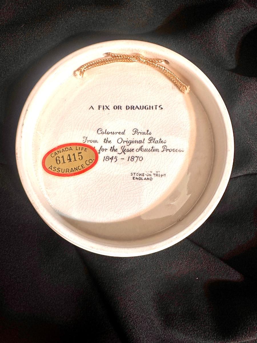 A Fix or Draughts reproduction ceramic pot lid from the colored prints from the original plates engraved for the Jesse Austin Process from 1845-1870
