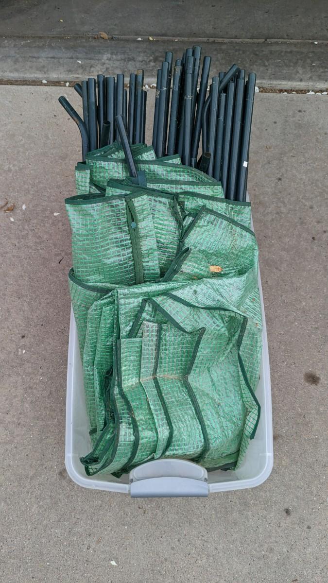 (3) 6'x3'x3' - each in very good condition having only one use under their belt. Includes all poles, connectors, and UV protected covers. More information can be found on Amazon for these by searching "Aoodor Greenhouse UV Protected Cold Frame"