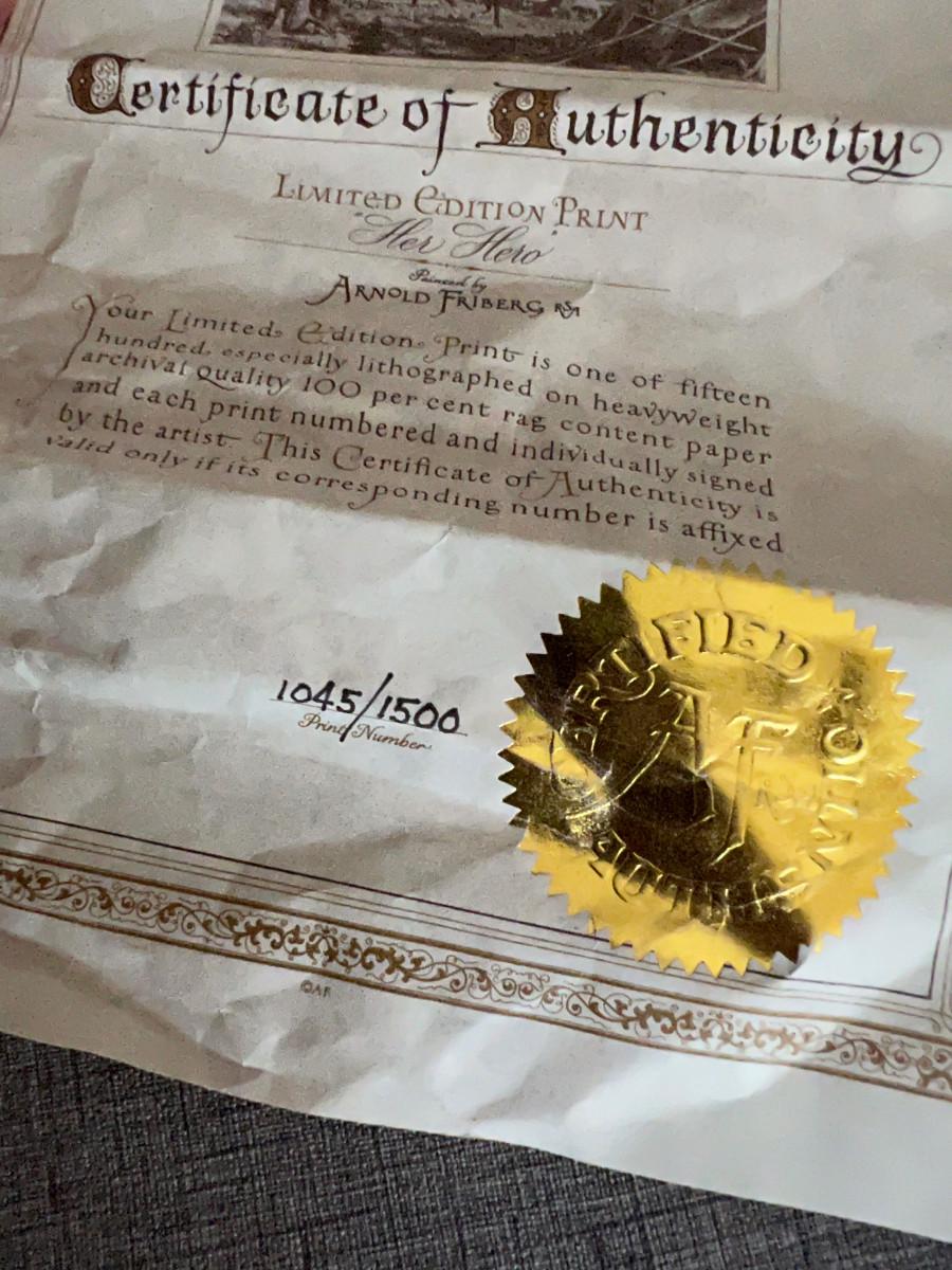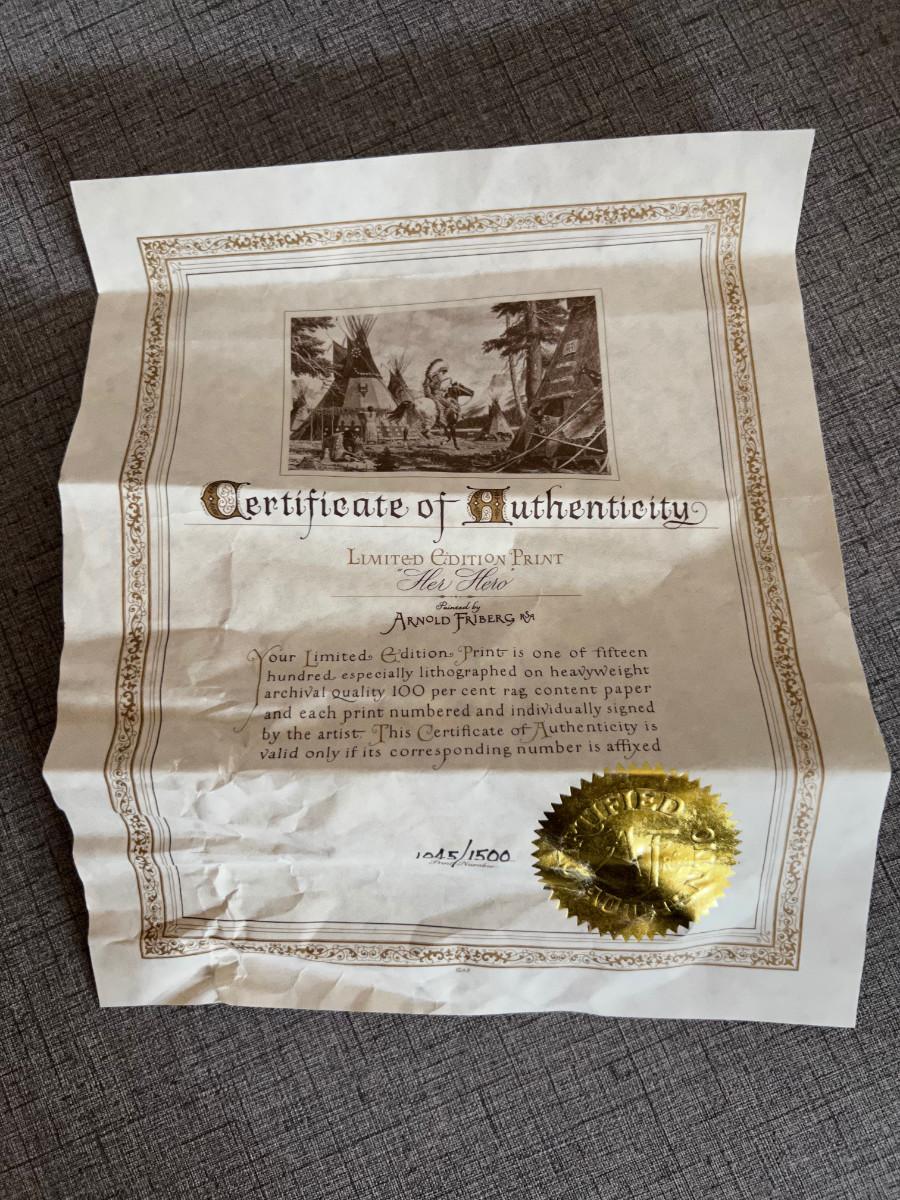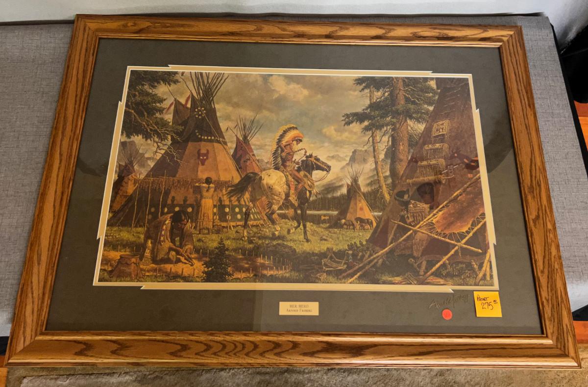A. Friberg Numbered and signed Print 1045 of 1500. Native American Scene "HER HERO"