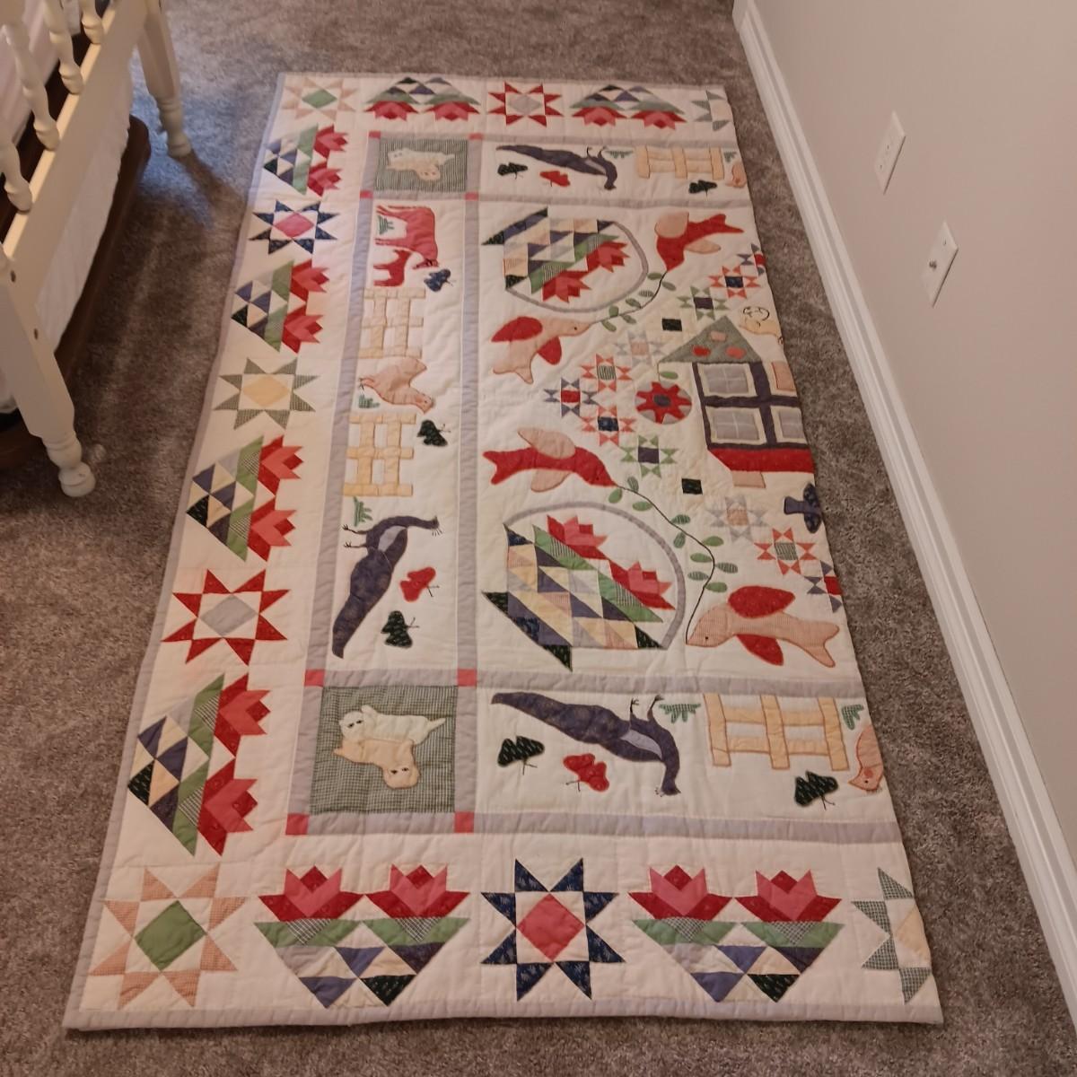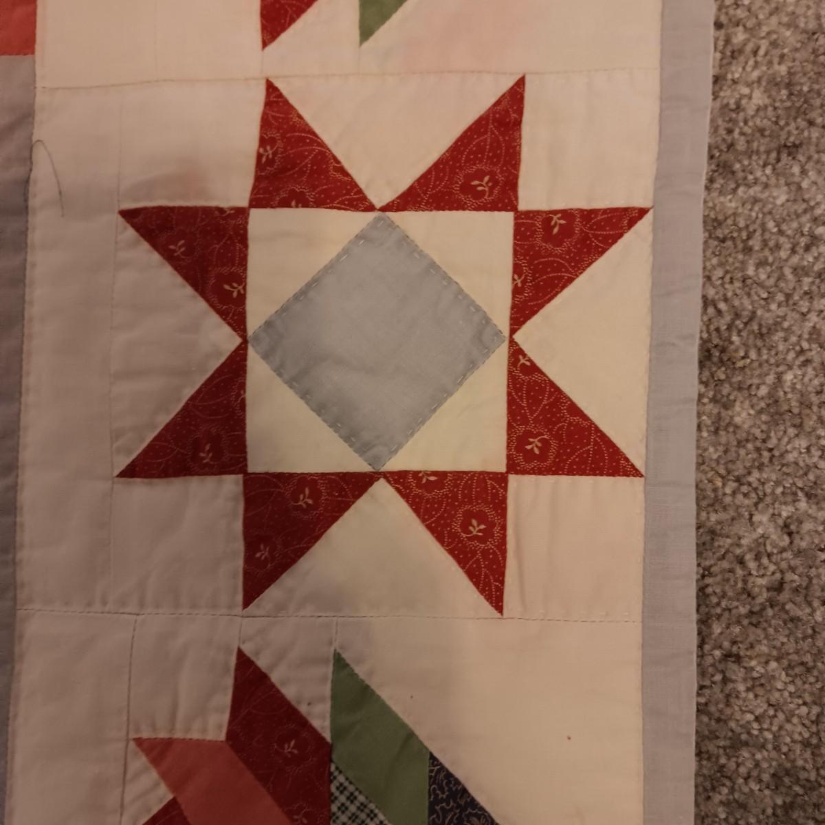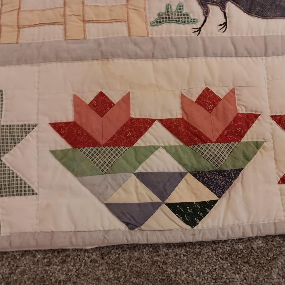 THERE ARE SOME WATER STAINS AND THE RED MATERIAL HAS LIGHT BLEEDING