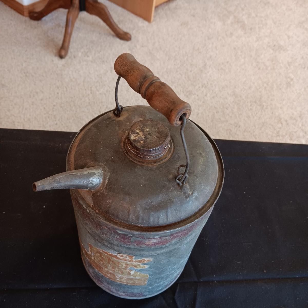 A GALVANIZED GAS CAN AND 2 OIL CANS