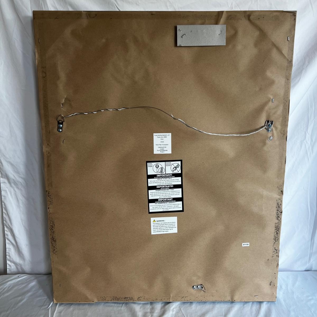 Wood framed mirror is 26” x 2” x 28”H. It appears to be able to be hung either vertically or horizontally.