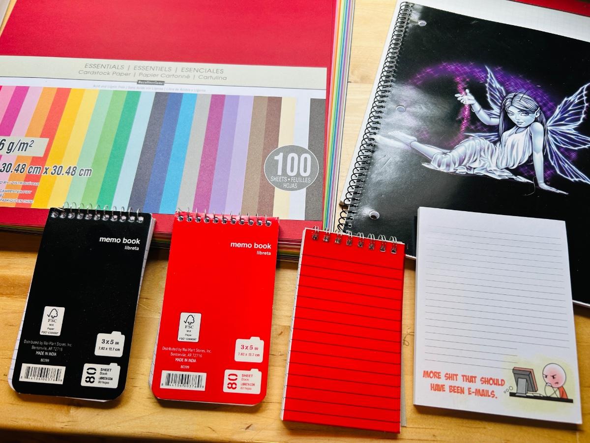 A GREAT ASSORTMENT OF PAPER PRODUCT, NOTE PADS, NOTEBOOKS, CRAFT FOAM