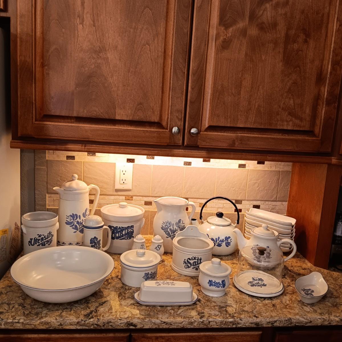 A CHIP WAS SEEN ON A LID (SEE PIC) ALSO THE PIECES ARE NOT PACKED SO PLEASE BRING BOXES AND PACKING PAPER IF WON