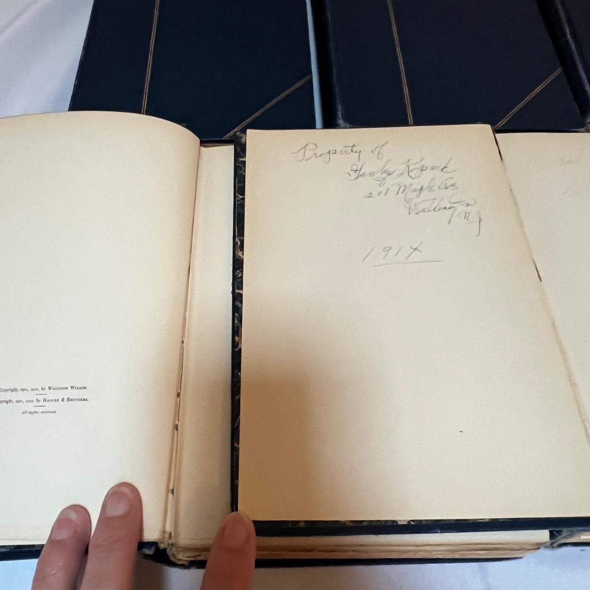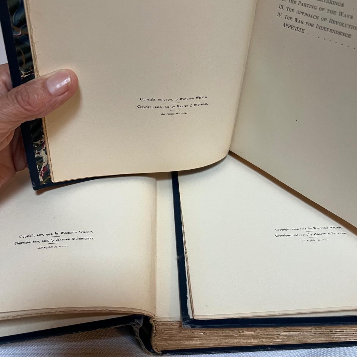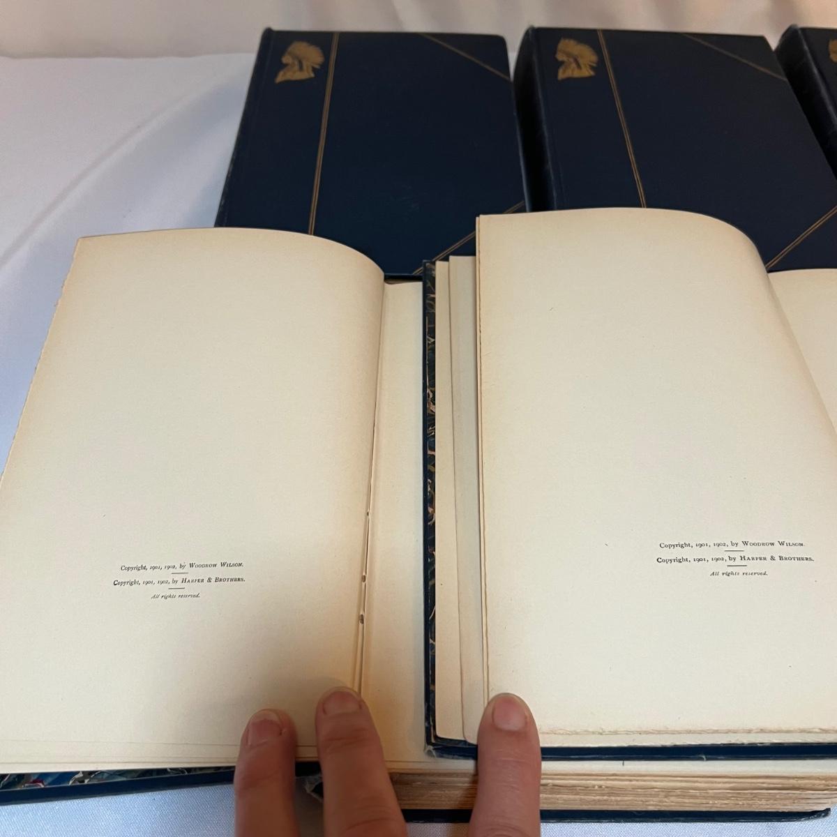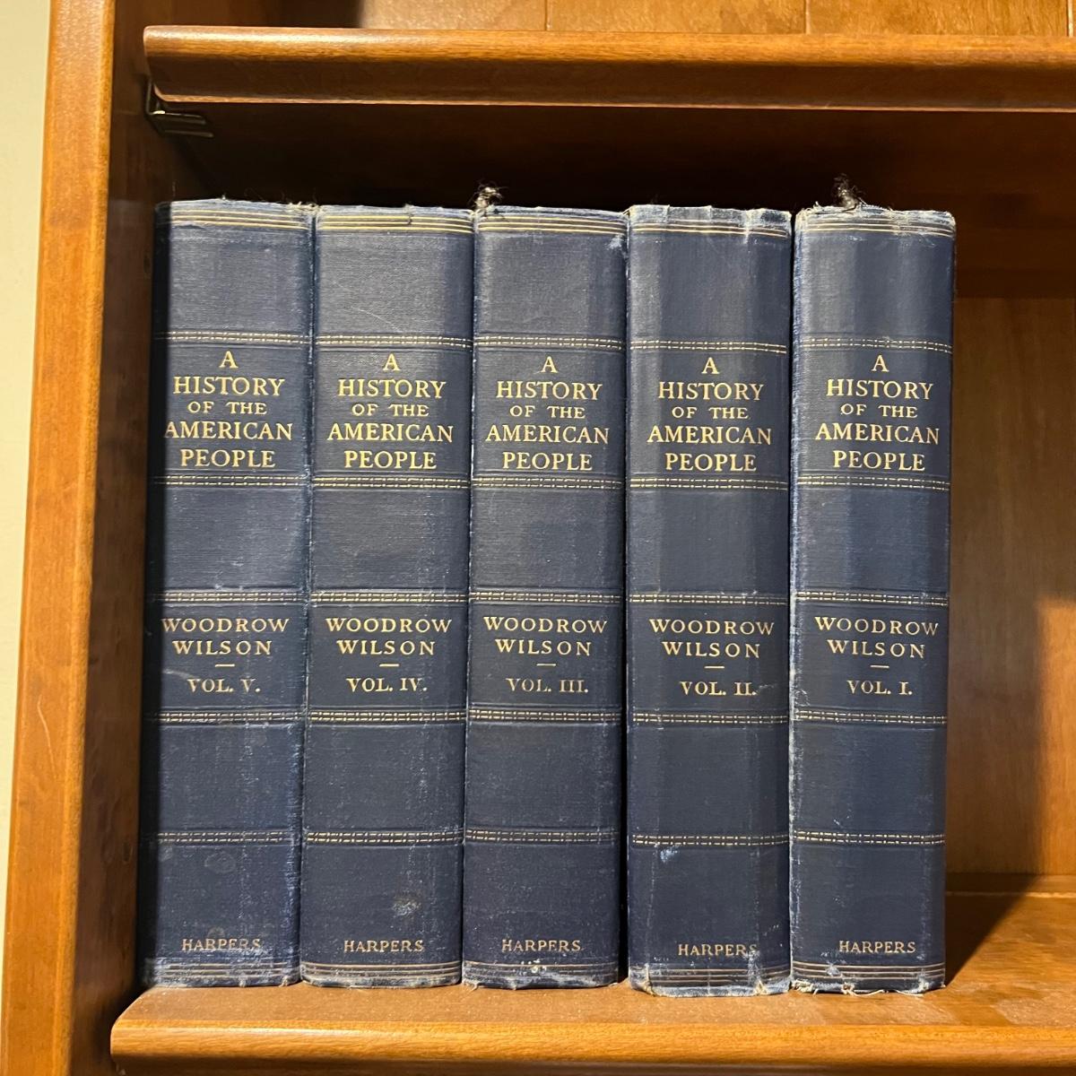 Volumes 1 through 5 of Woodrow Wilson’s ‘A History of the American People’. Note that one has been written in. See images for more information.