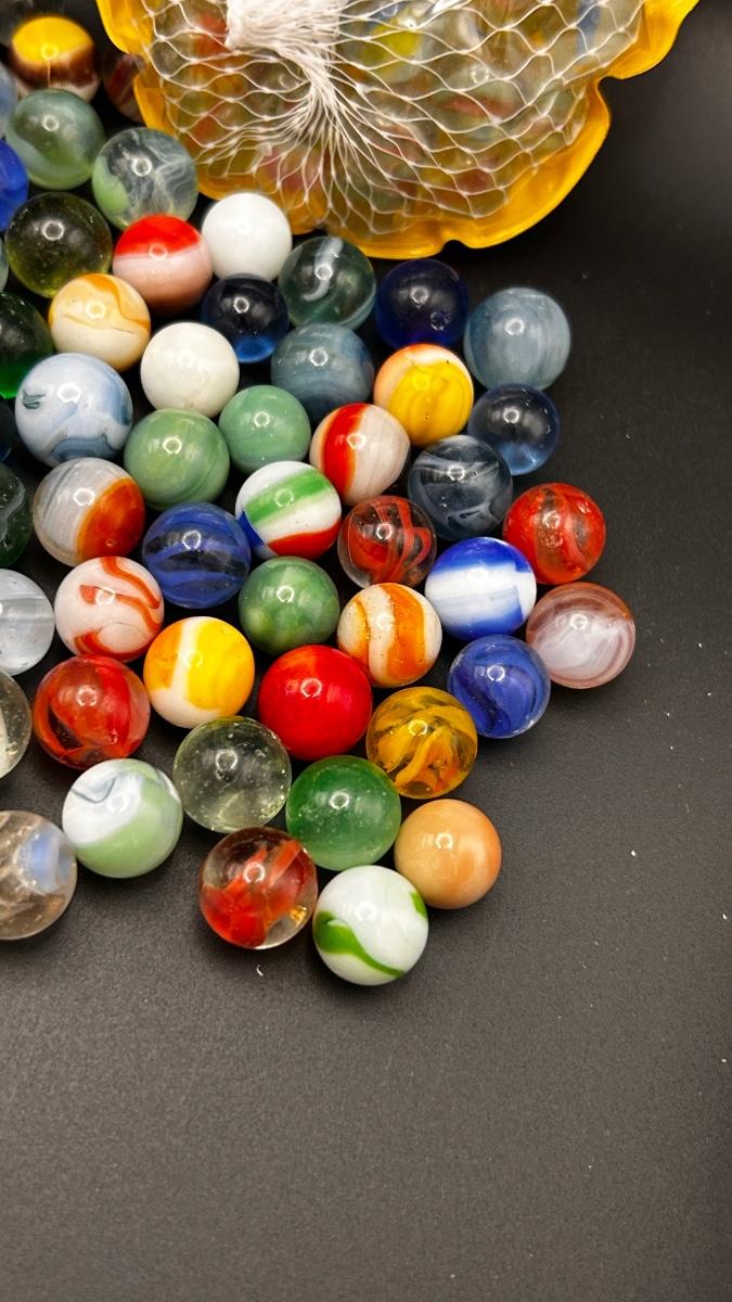 A JAR OF MISC MARBLES AND AN UNOPENED PACKAGE