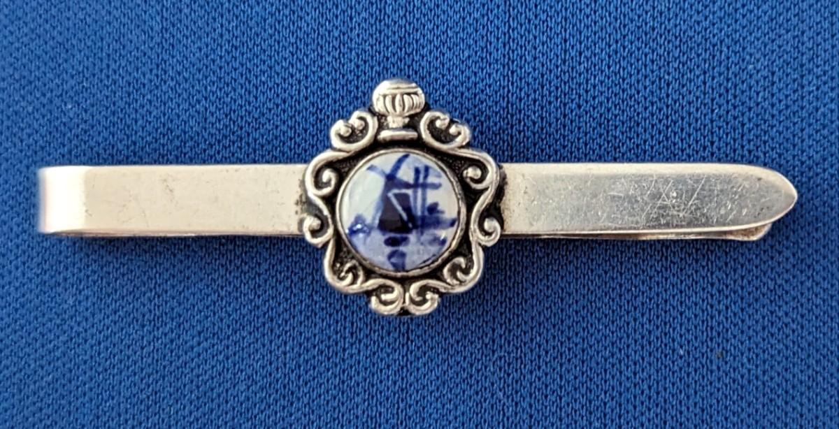 A. Landmeter Dutch silversmith 1948-1957 835 silver and Delft tie bar