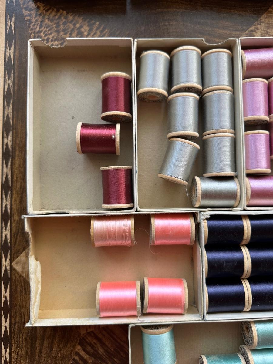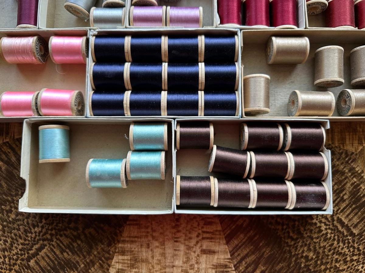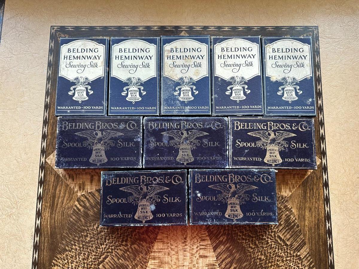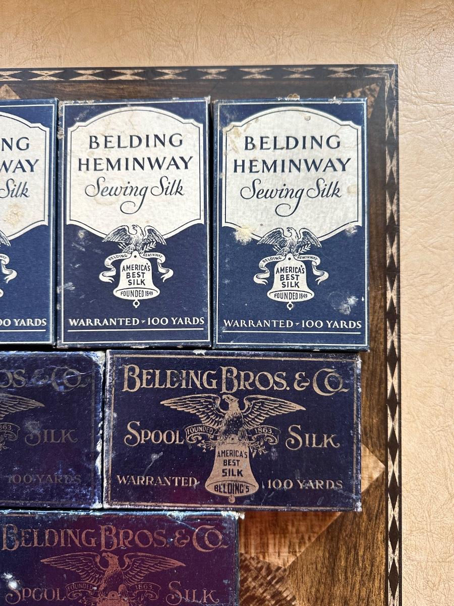 A LARGE ASSORTMENT OF BELDING HEMINWAY THREAD ON WOODEN SPOOLS