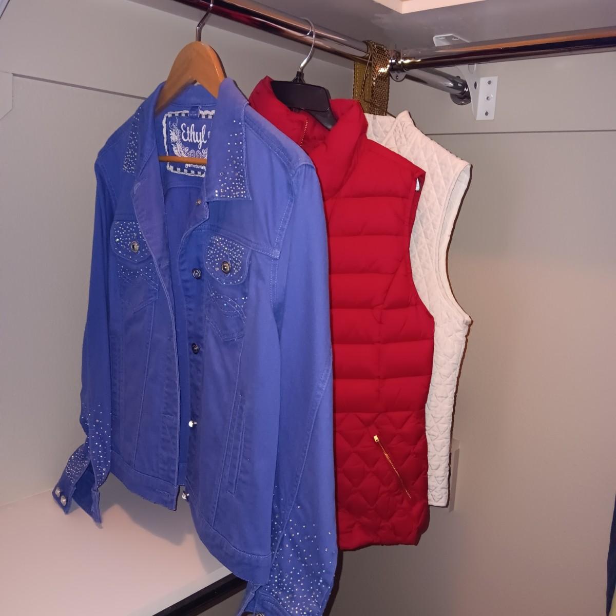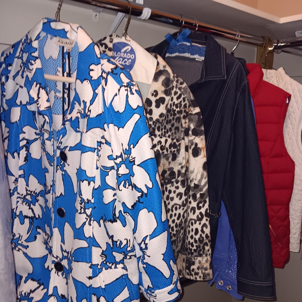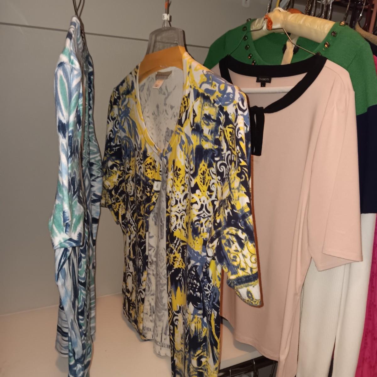 A LARGE COLLECTION OF LADIES CASUAL SHIRTS, SWEATERS, LIGHT JACKETS FROM TALBOTS, COLDCREEK, CHICO'S AND MORE (MED)