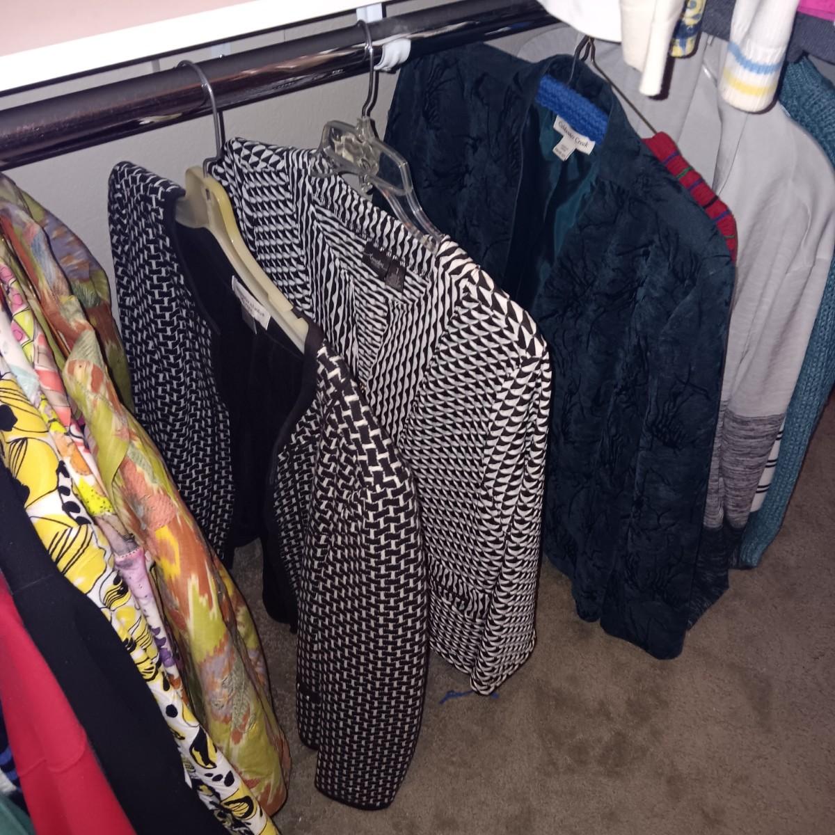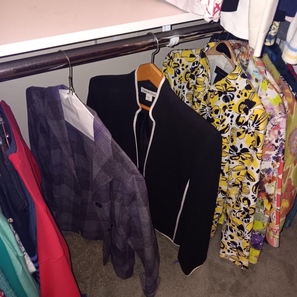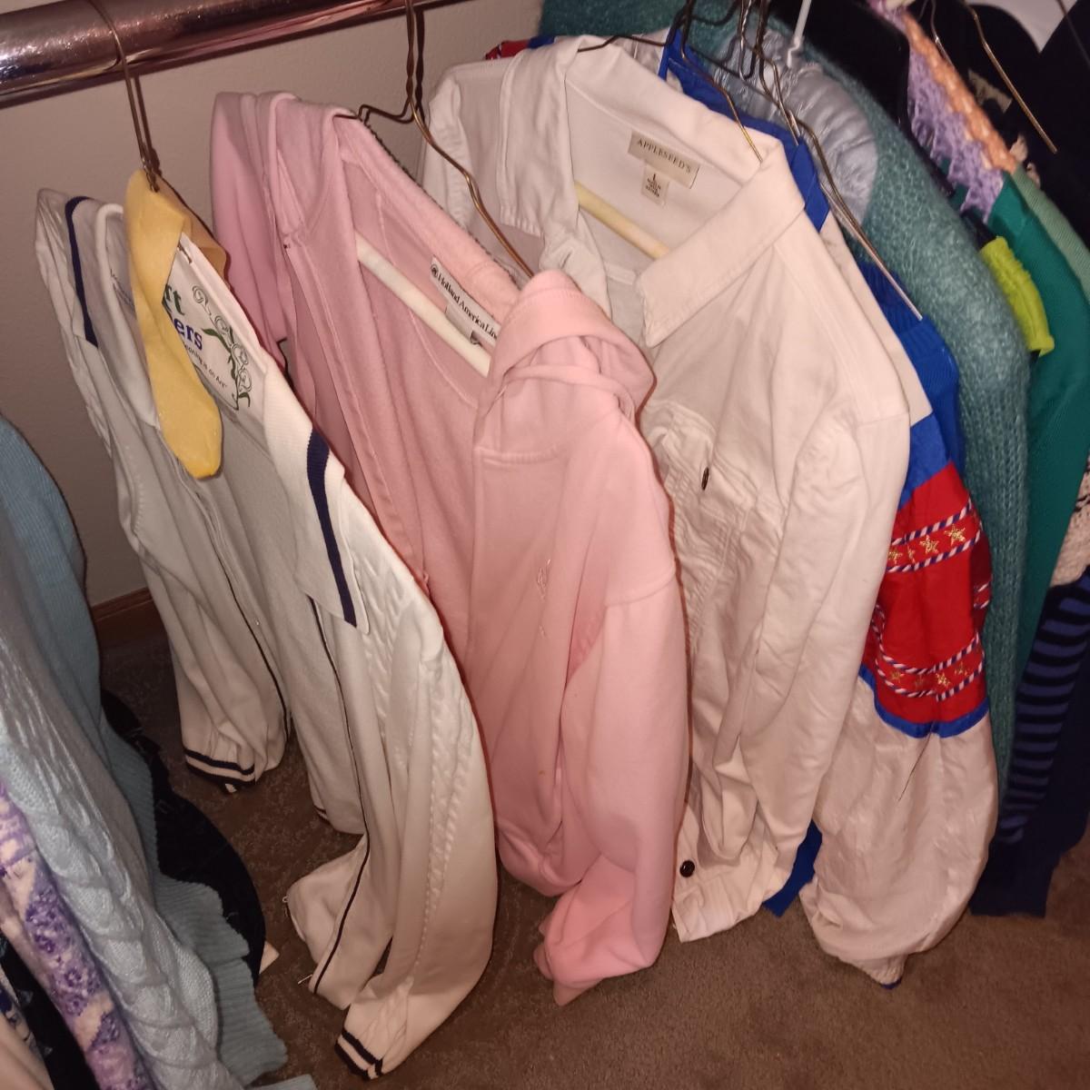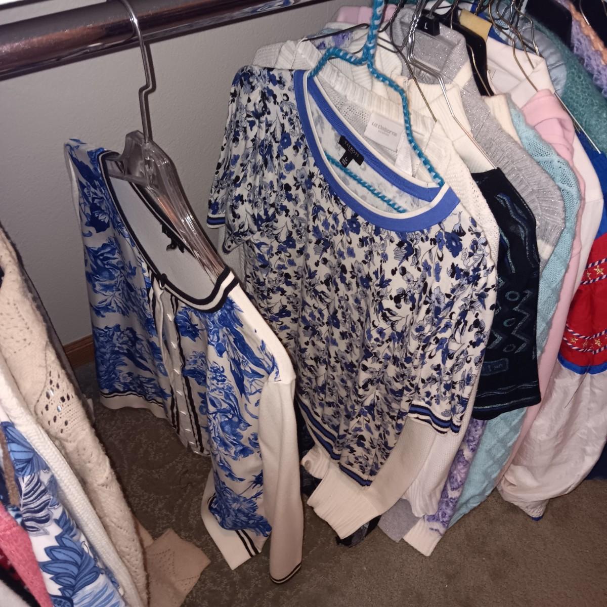 A LARGE COLLECTION OF LADIES CASUAL SHIRTS, SWEATERS, LIGHT JACKETS FROM TALBOTS, COLDCREEK, CHICO'S AND MORE (MED)