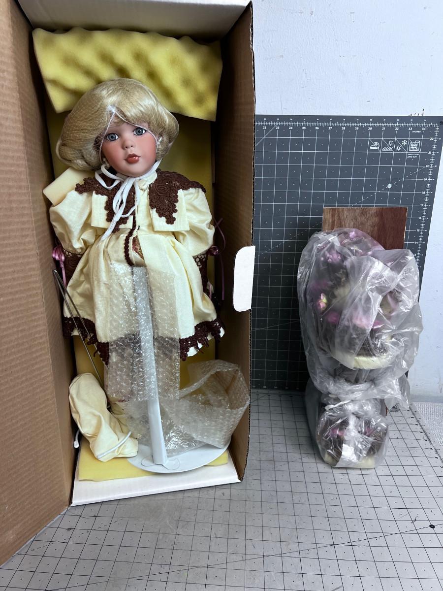 HUGE DOLL with a Mail Box and Flowers and she has a stand. She new and never been out of the Box.