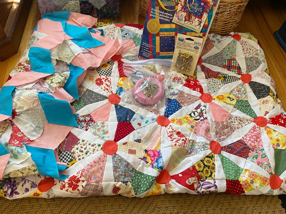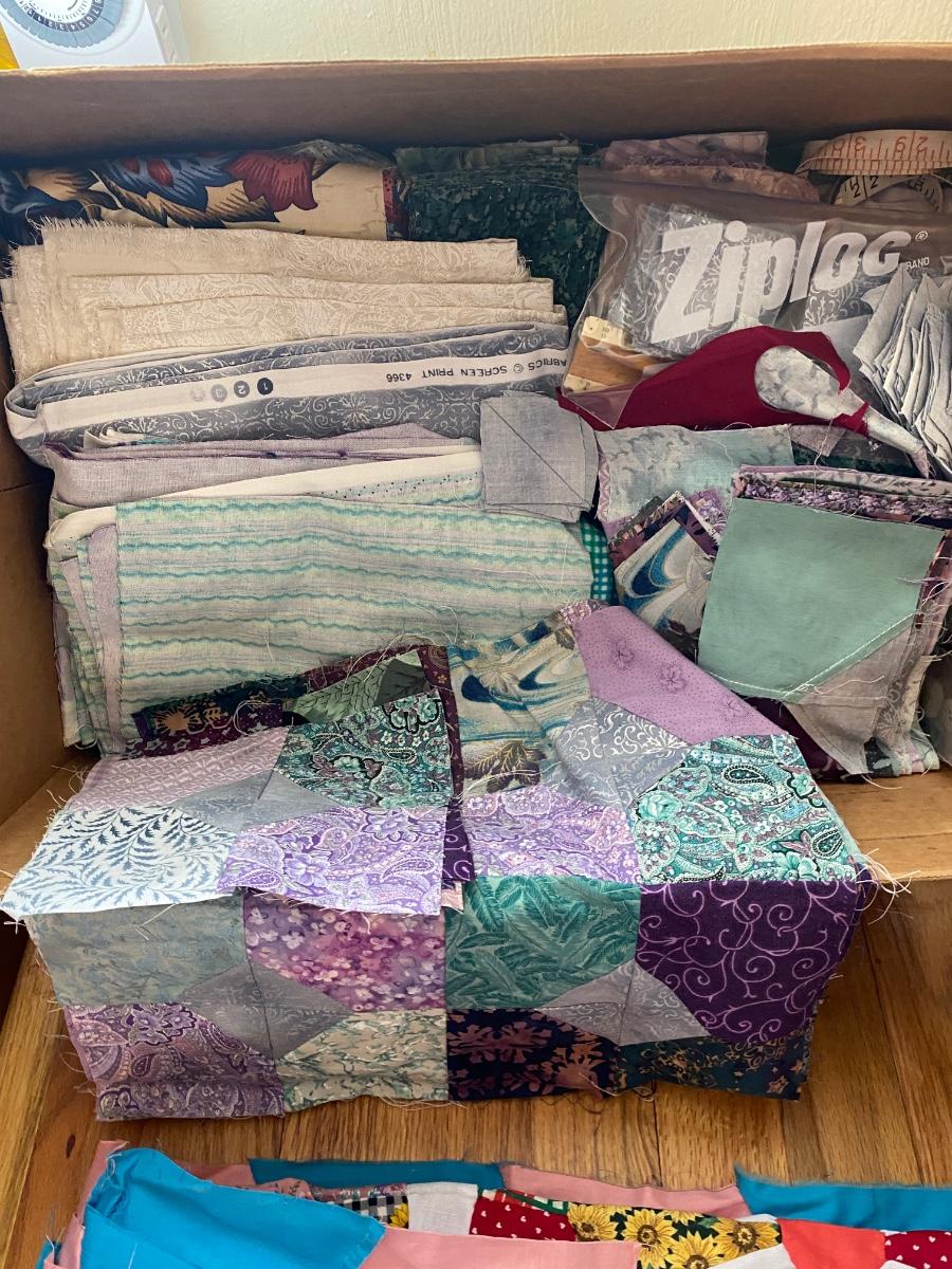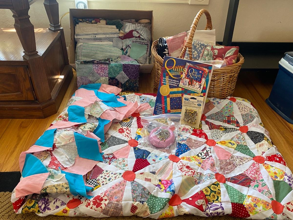 Can’t even begin to imagine how Many hours have to be put into this 106” x 90” Masterpiece of a quilt with everything needed to get a jump on the next beautiful piece or art. This would just love to be a finished quilt to spread across a bed or wrap up in on a cold day with a good book or movie.