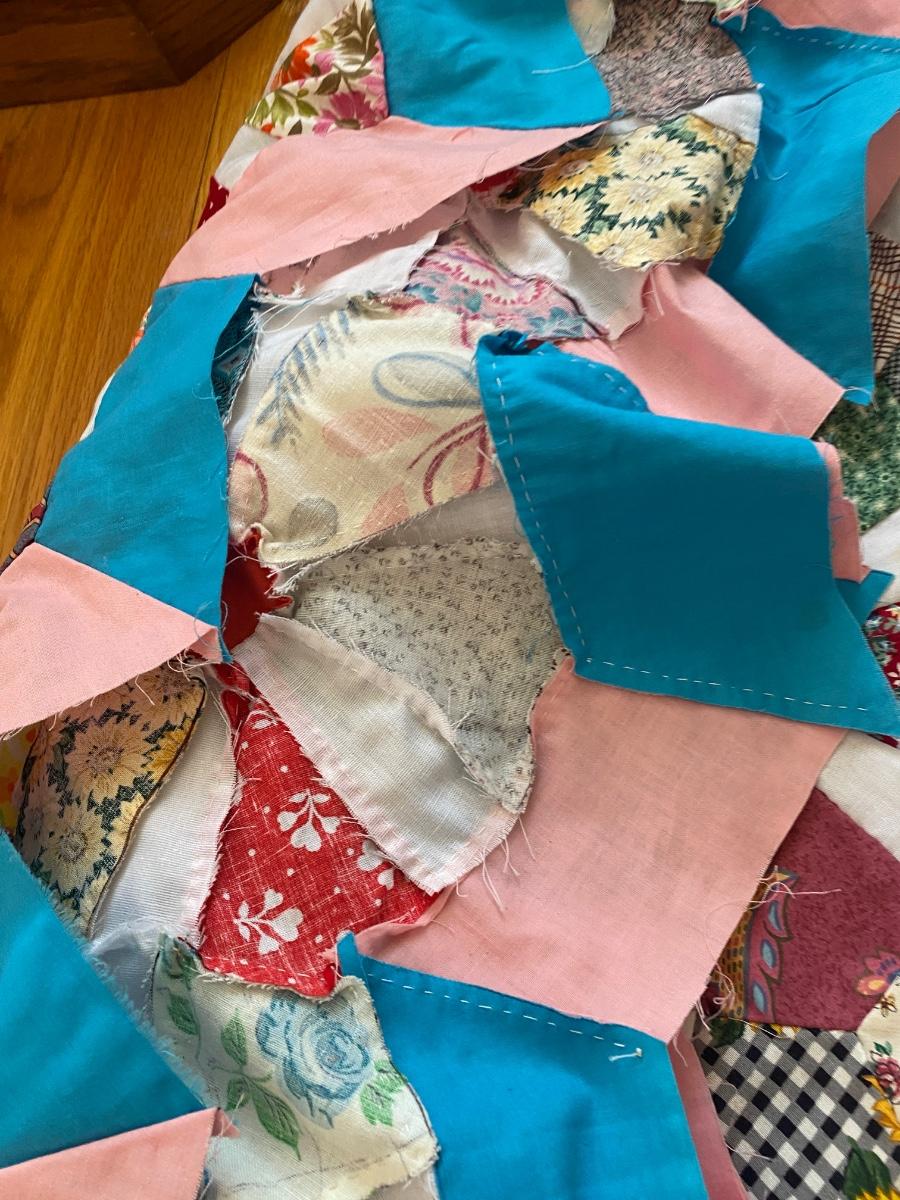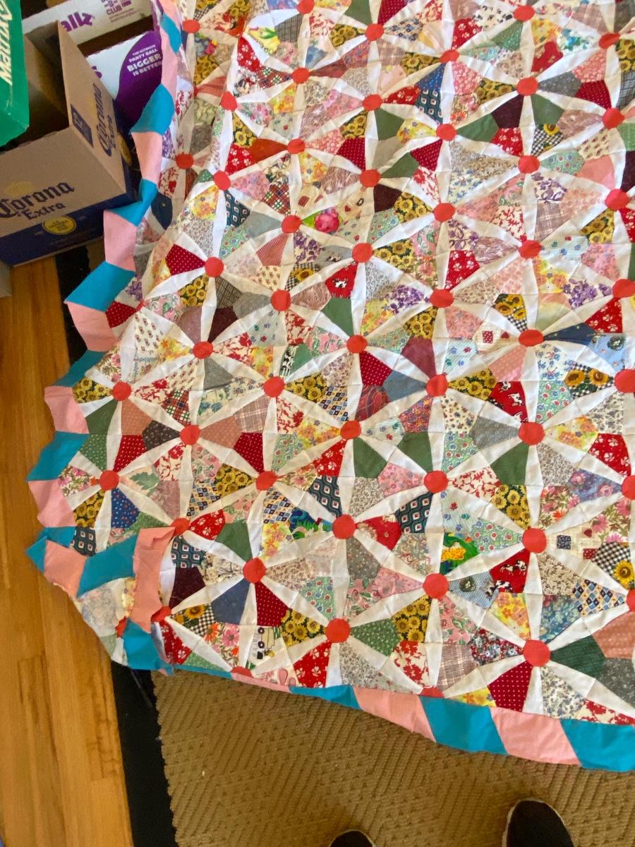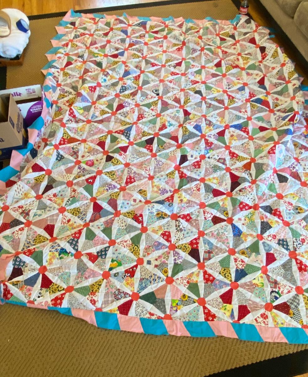 Can’t even begin to imagine how Many hours have to be put into this 106” x 90” Masterpiece of a quilt with everything needed to get a jump on the next beautiful piece or art. This would just love to be a finished quilt to spread across a bed or wrap up in on a cold day with a good book or movie.