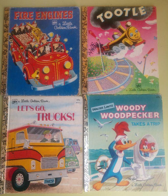 Lot 28 A Little Golden Book Fire Engines, Tootle, Let's Go Trucks, & Woody Woodpecker 70s 80s
