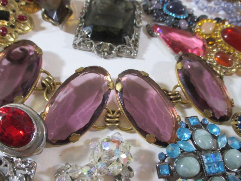 A Lot of Antique, Vintage Collectible Rhinestone Costume Jewelry Lot Some signed