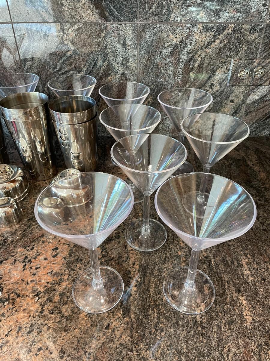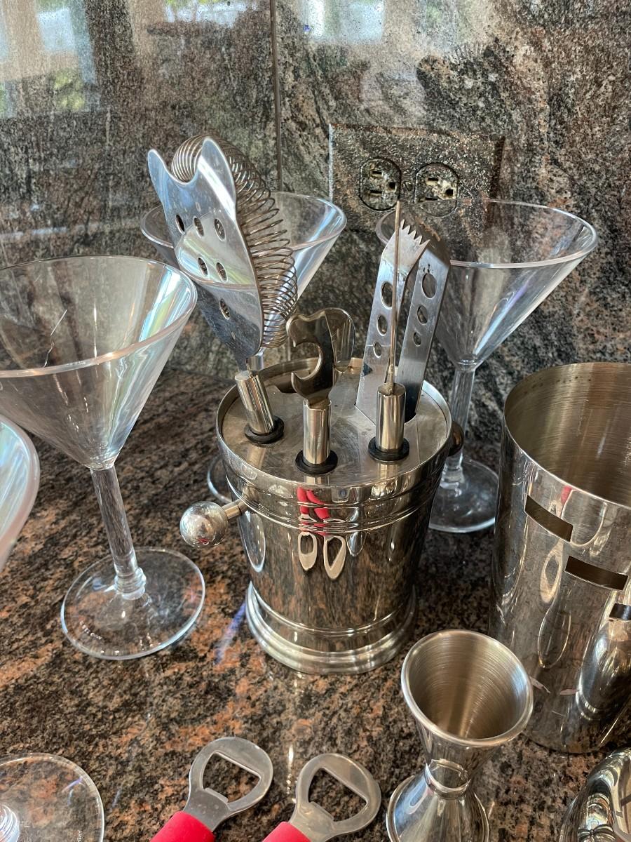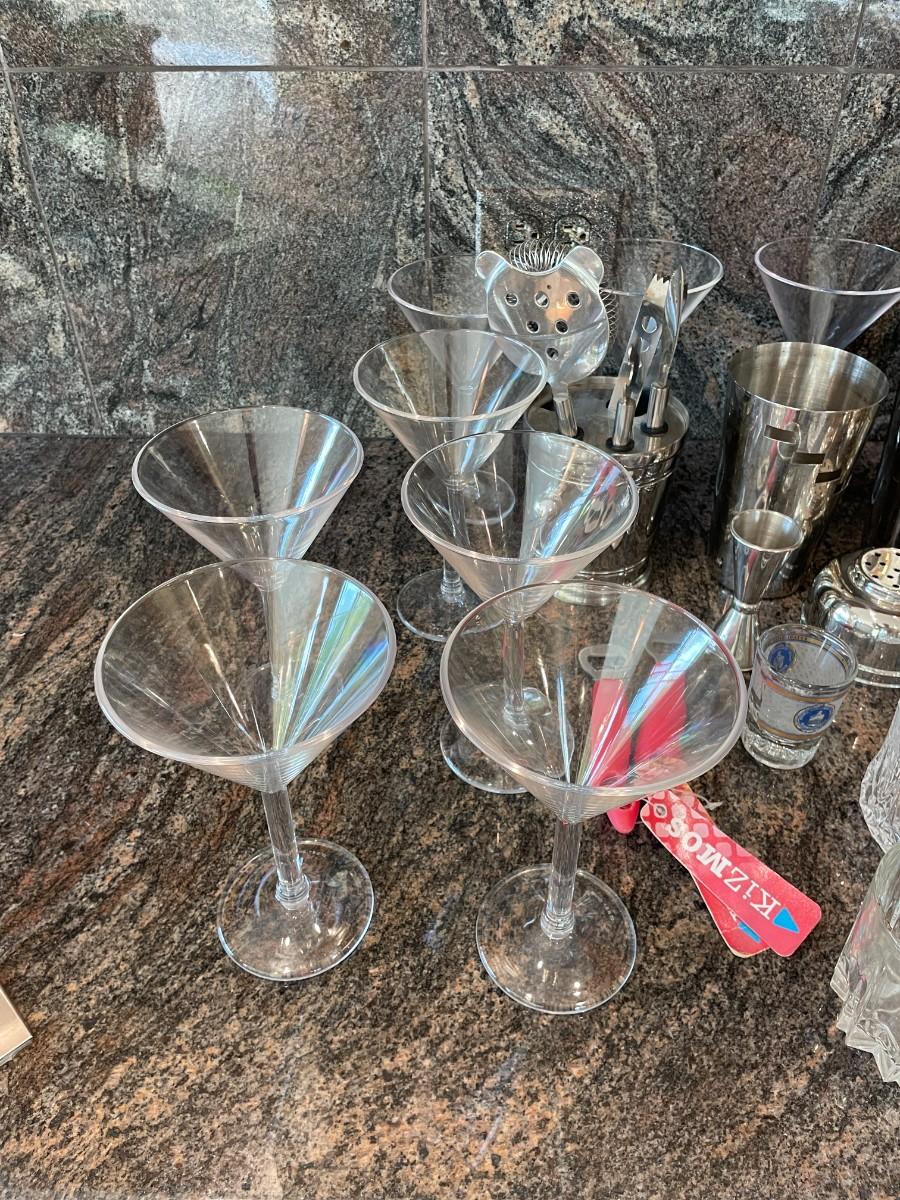 Lot includes Cocktail mixers, Assorted cocktail glasses etc.