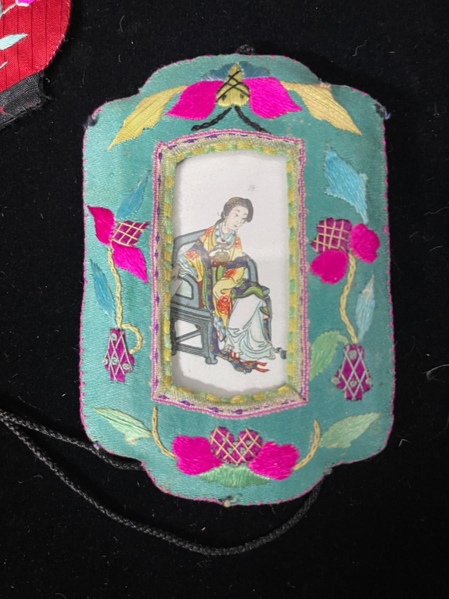 A Lot of Vintage Chinese Embroidered Accessories -Purse, lanterns, mirror
