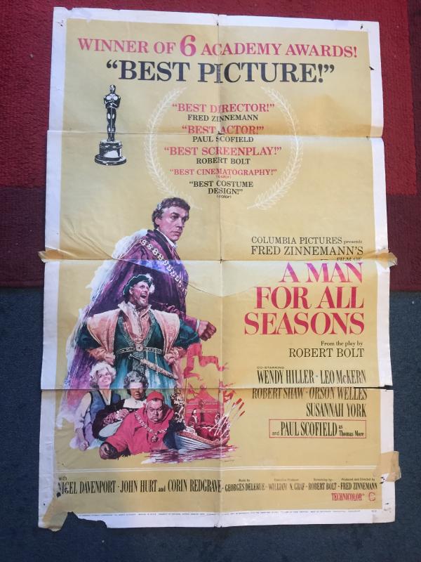 A Man for all Seasons Original one sheet movie poster OSCAR Winner!