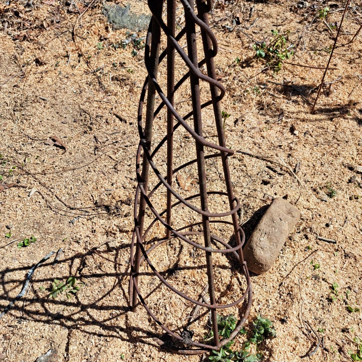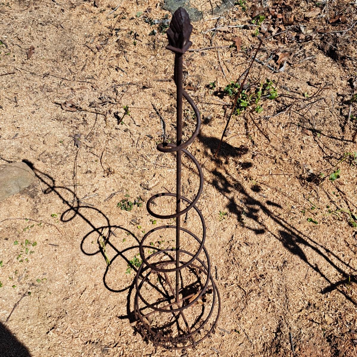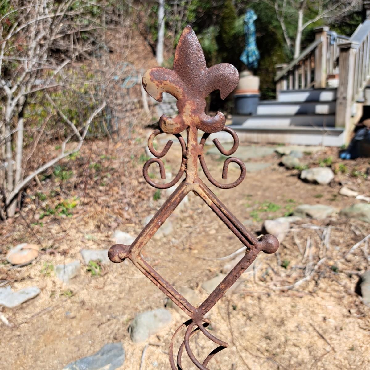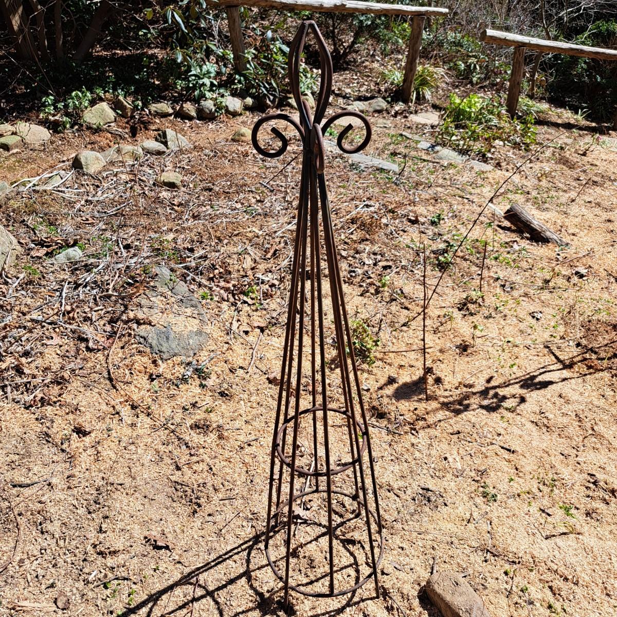 There are nine of these fabulous rusted metal garden topiaries, most made to be staked into the ground, ranging in size from to 18"H to 55." The tallest tower metal topiary has outstretched arms ready to hold a potted plant or gazing ball. Local pickup only.