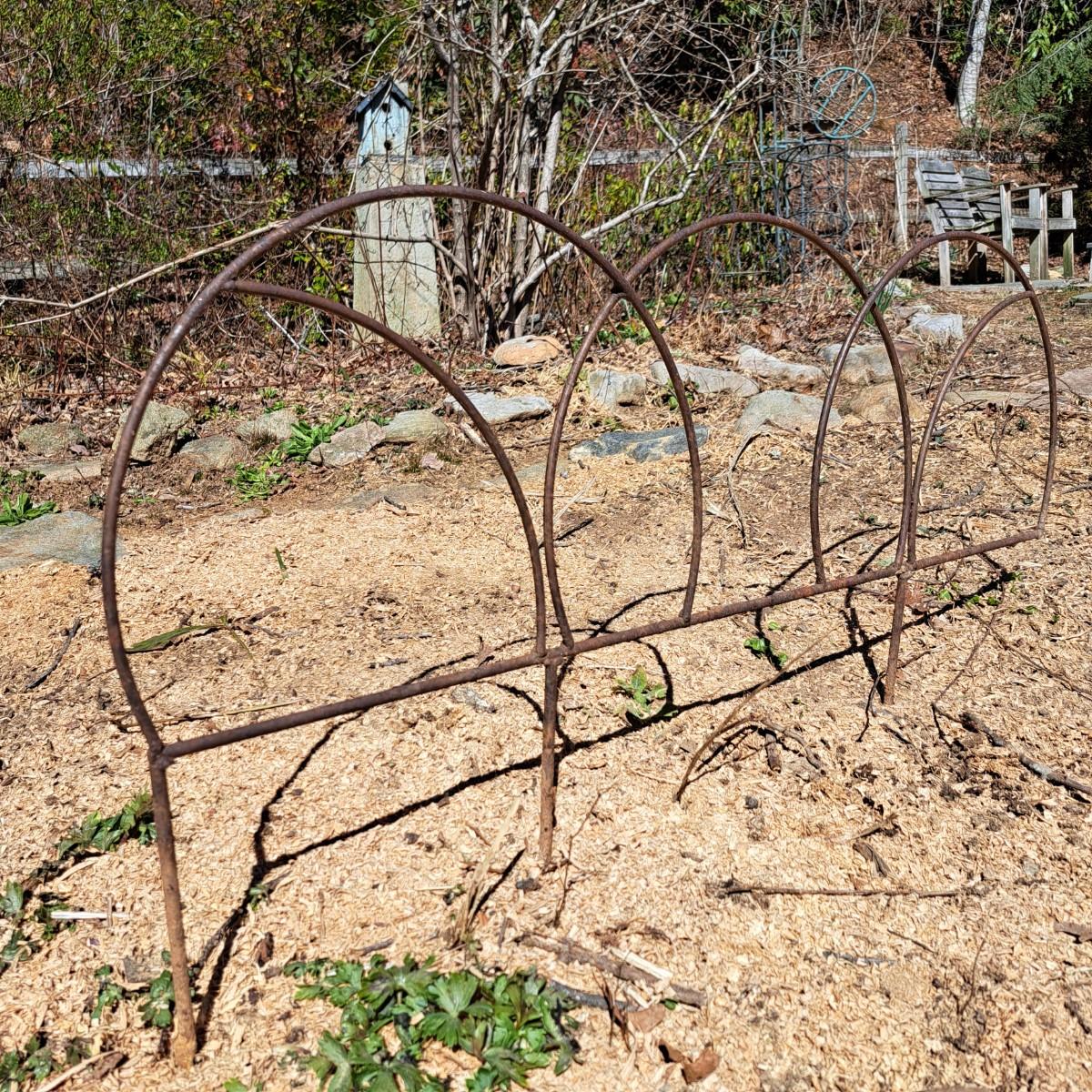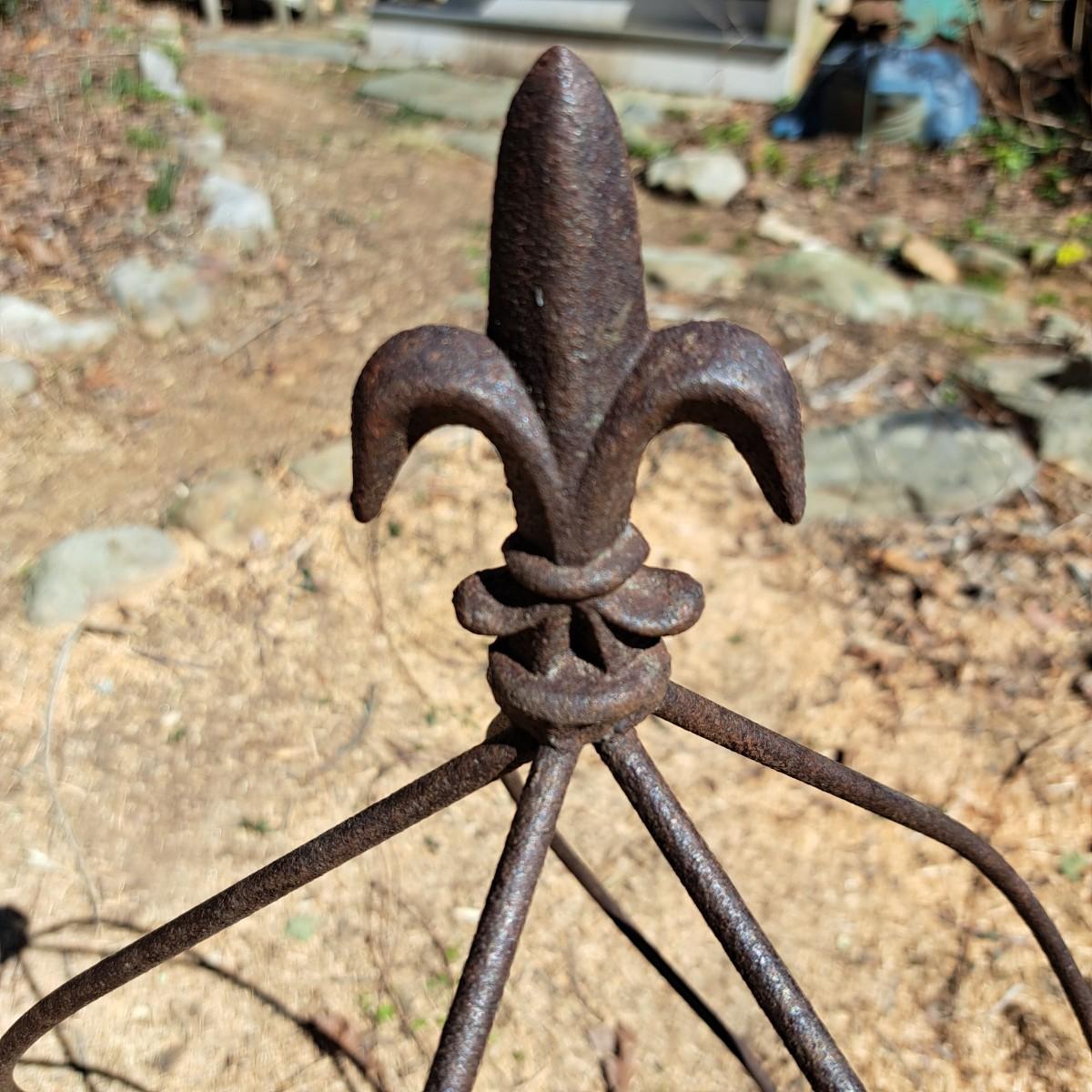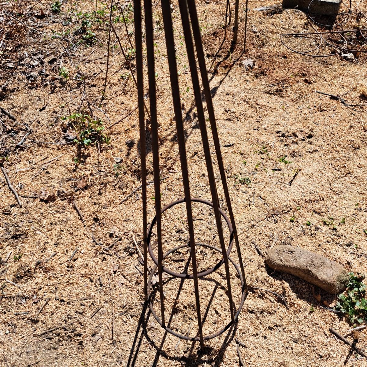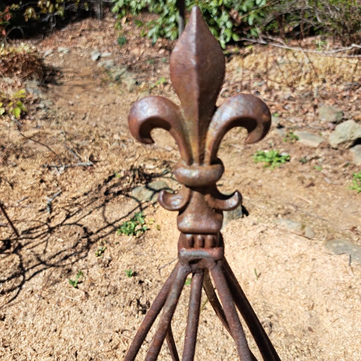 There are nine of these fabulous rusted metal garden topiaries, most made to be staked into the ground, ranging in size from to 18"H to 55." The tallest tower metal topiary has outstretched arms ready to hold a potted plant or gazing ball. Local pickup only.