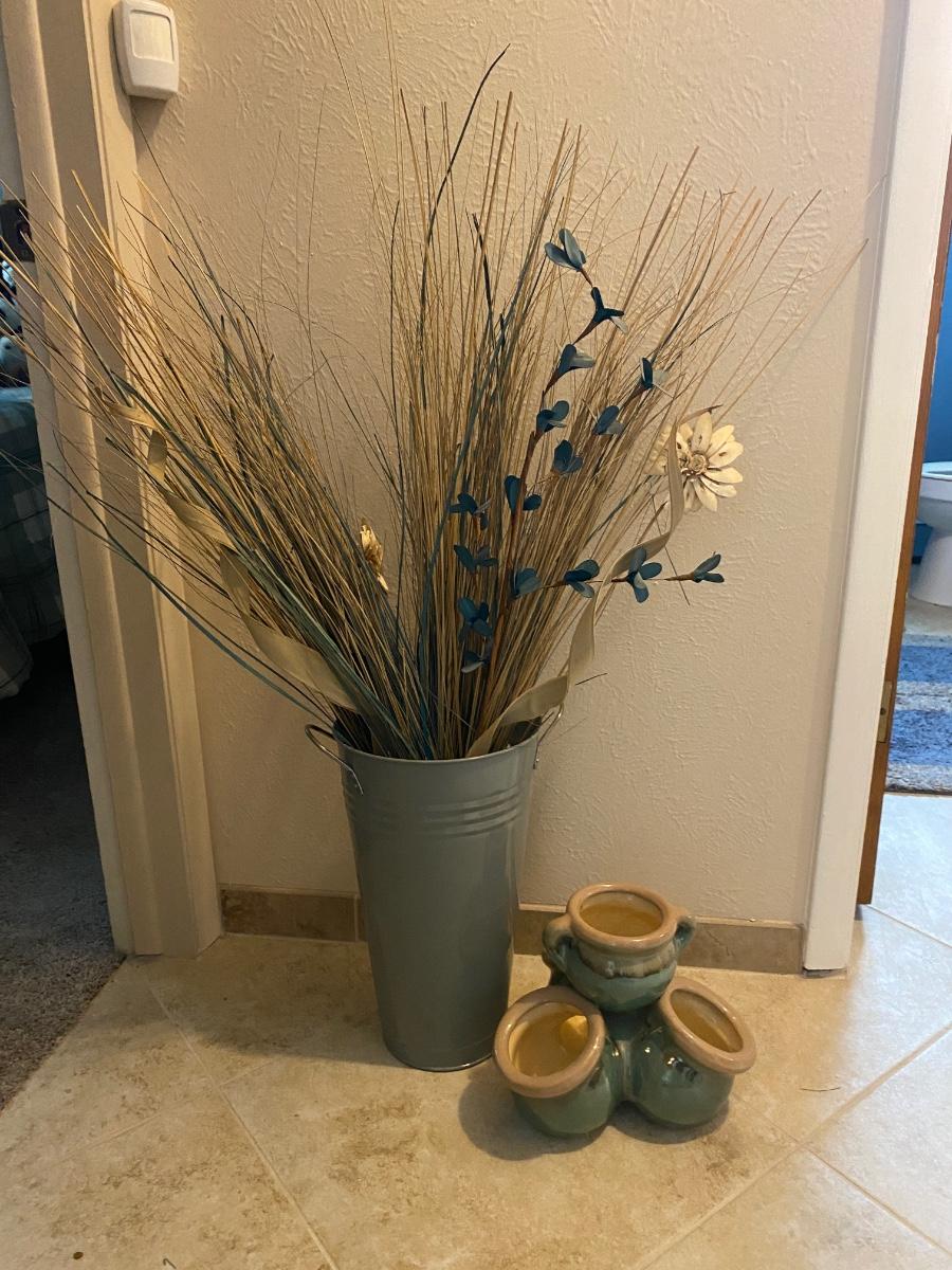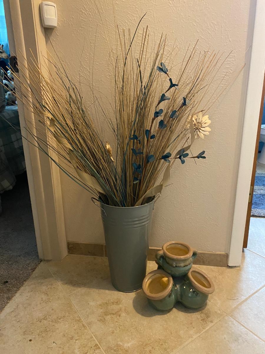 STRAWBERRY POT AND A NEAT NARROW GALVANIZED BUCKET