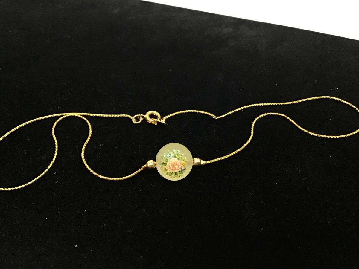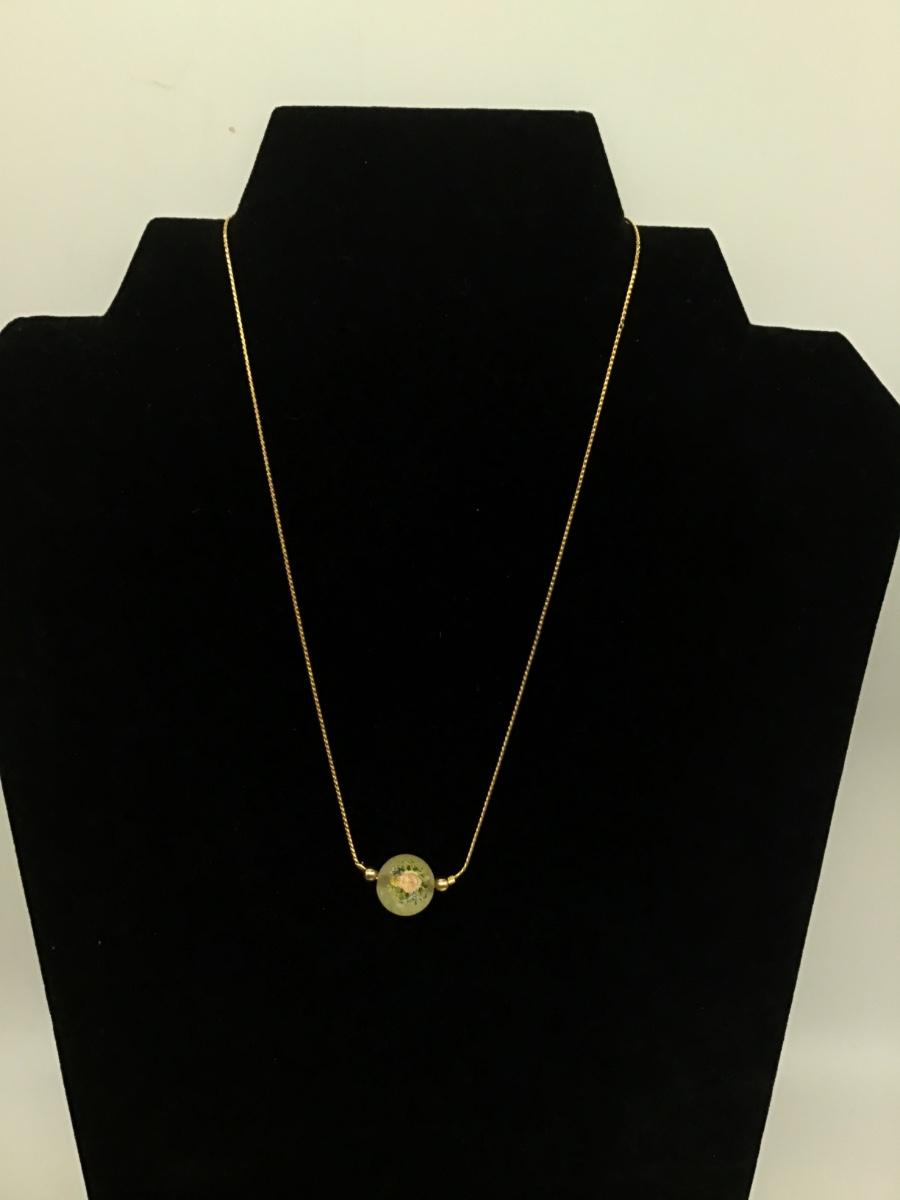Vintage Dainty Frosted Glass Rose Necklace
