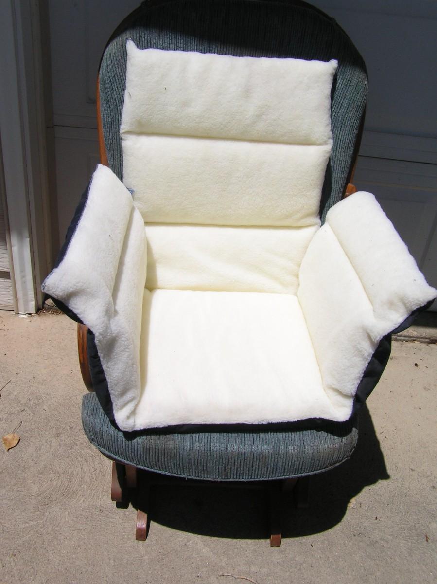 A new looking chair cozy. Thick wooly (not wool) soft inside material. Cloth lines on the outside, care tag still attached