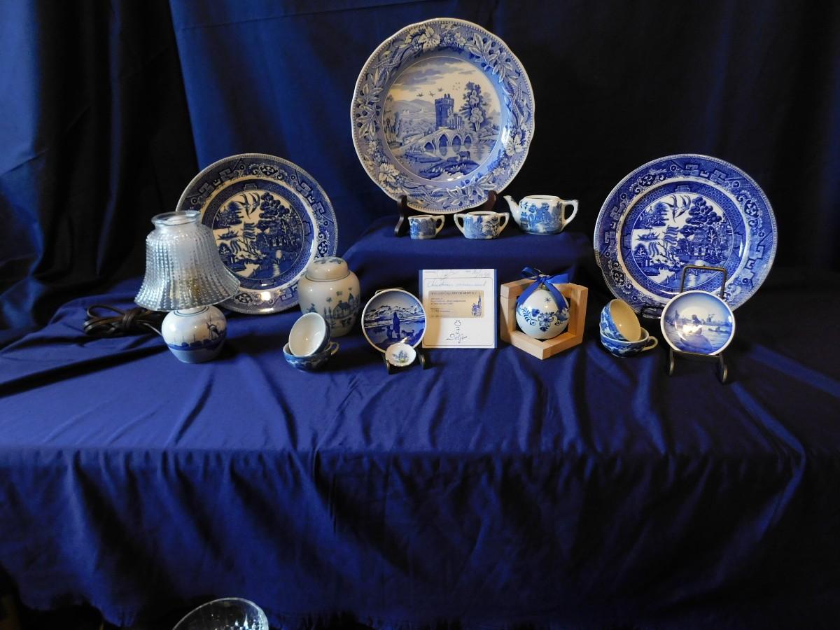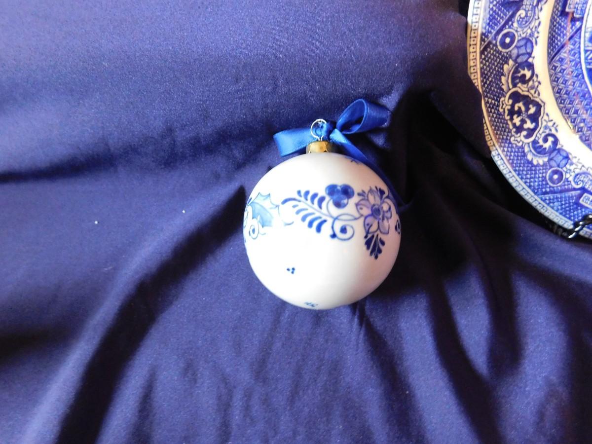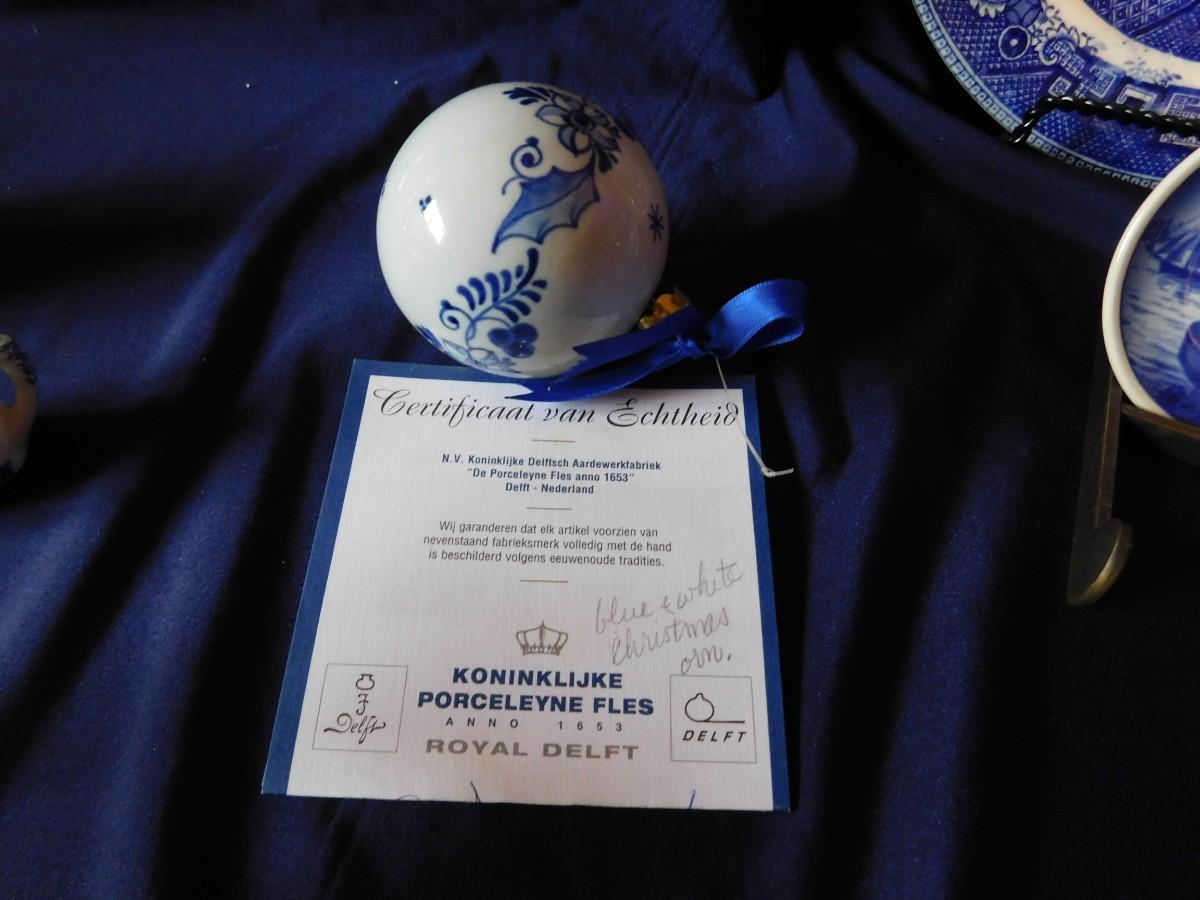 A NICE VARIETY OF VINTAGE BLUE AND WHITE GLASS EVEN A CHRISTMAS BULB WITH CERTIFICATE OF AUTHENTICITY