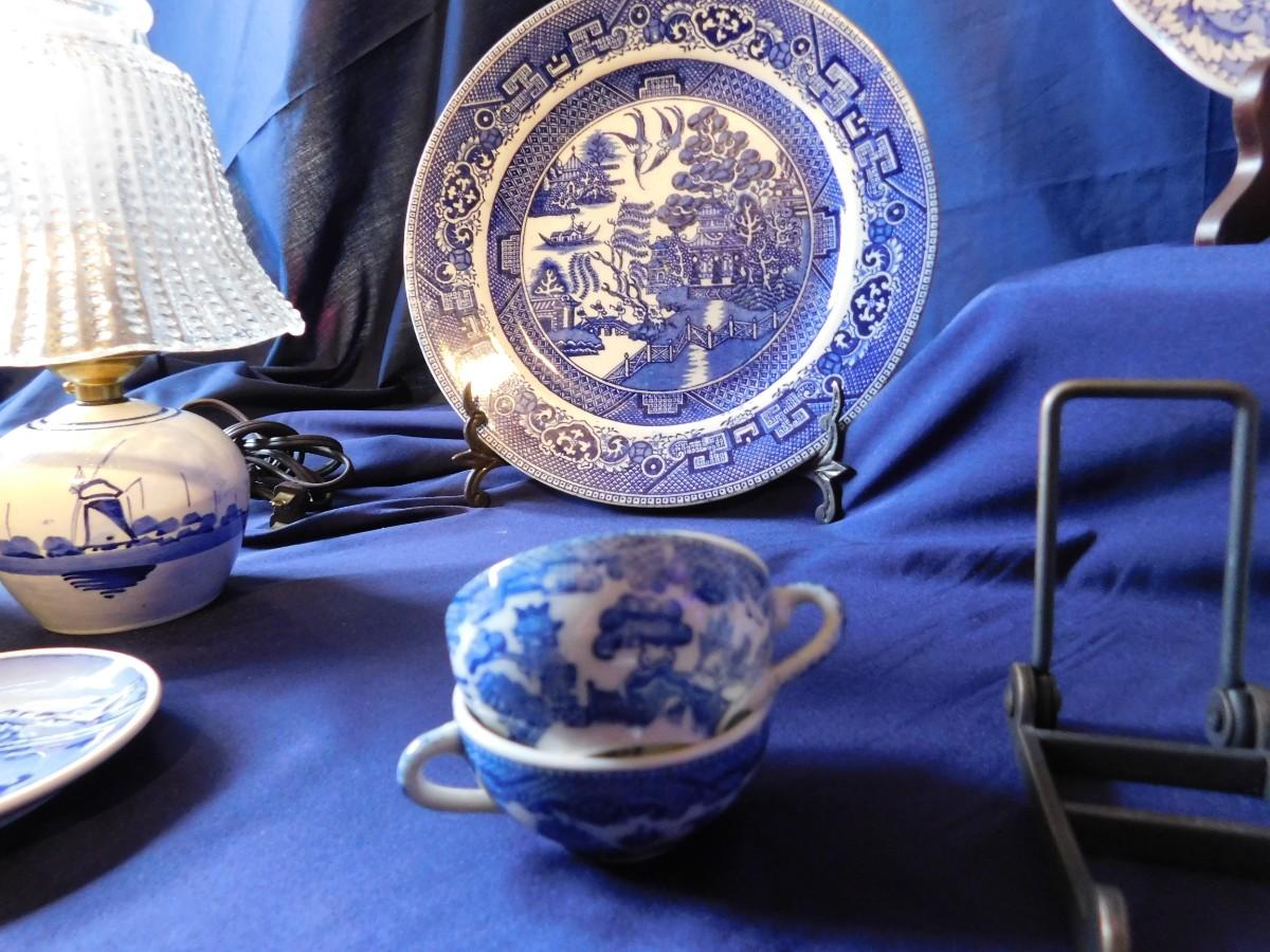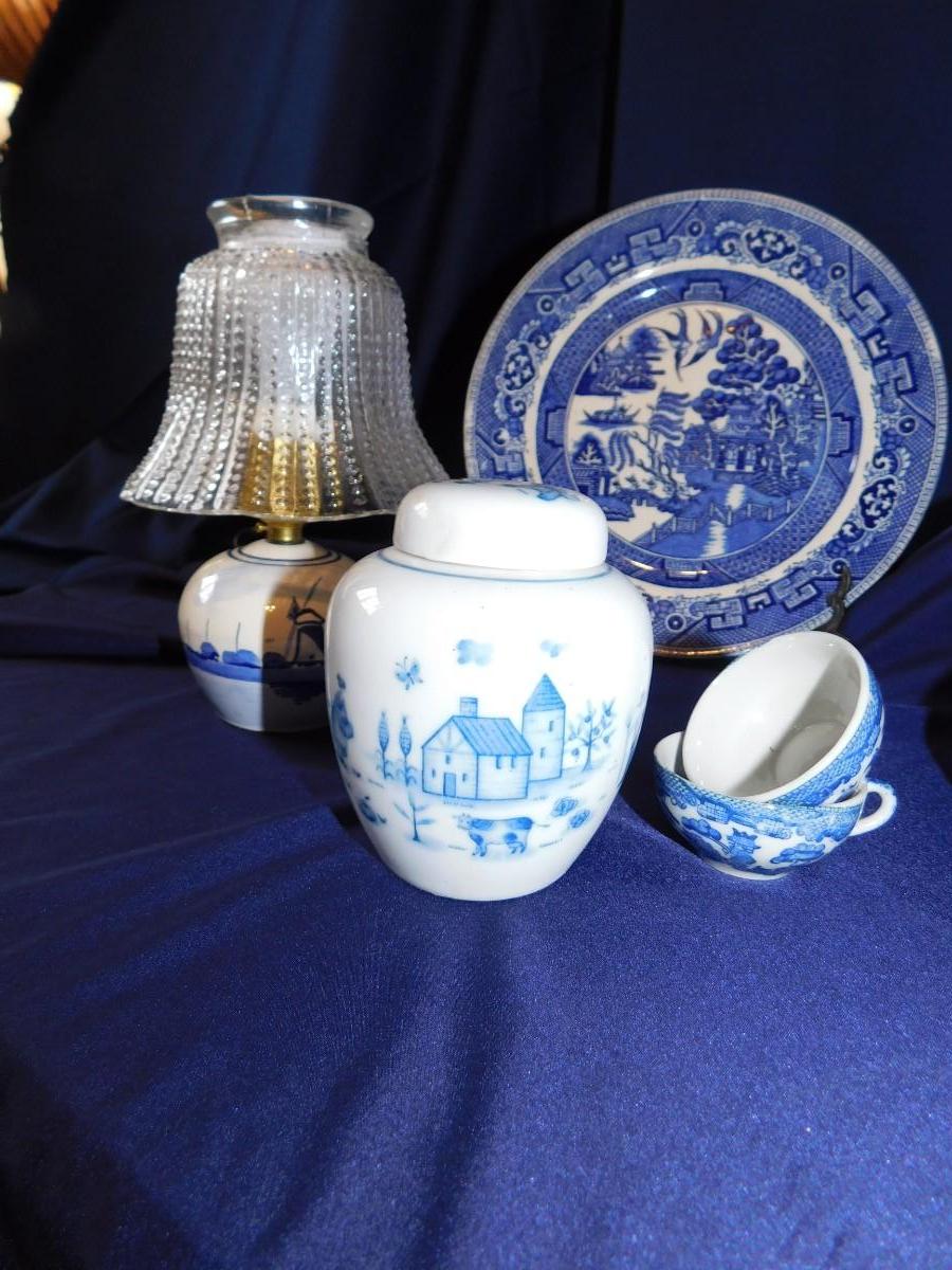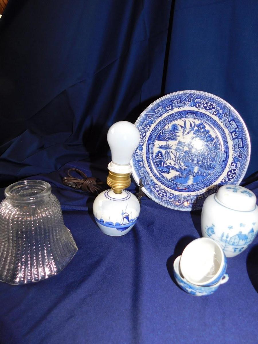 A NICE VARIETY OF VINTAGE BLUE AND WHITE GLASS EVEN A CHRISTMAS BULB WITH CERTIFICATE OF AUTHENTICITY