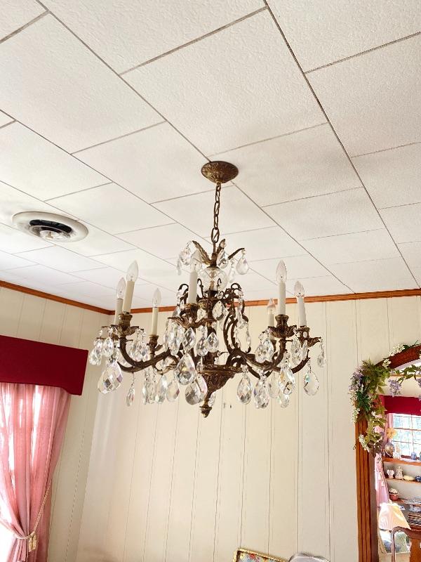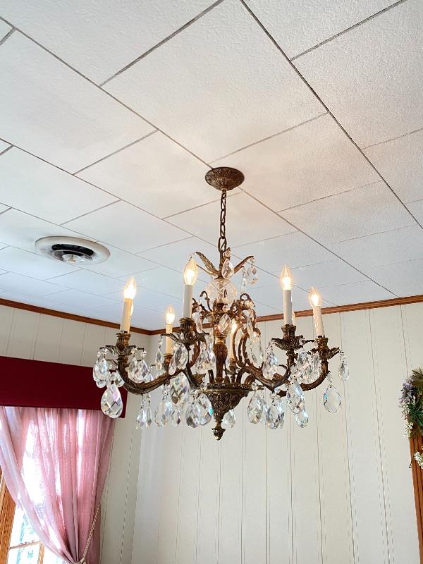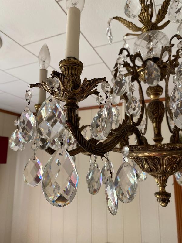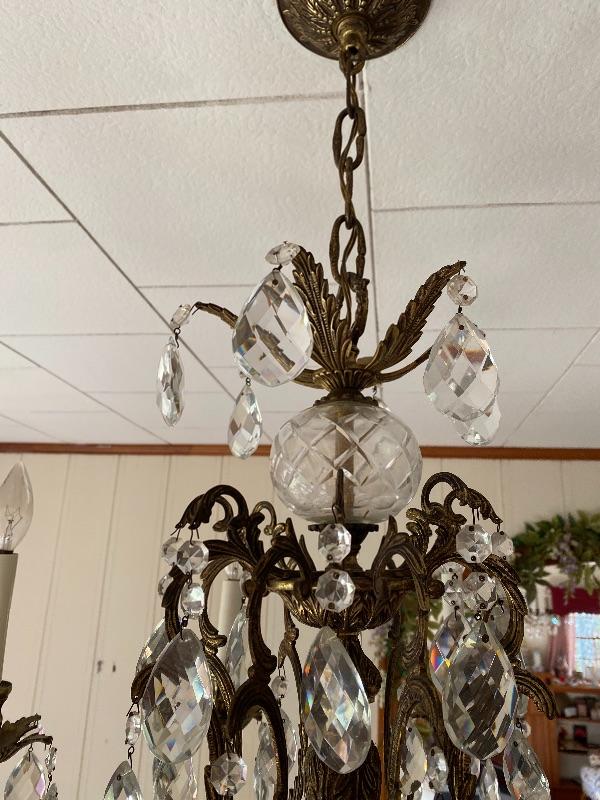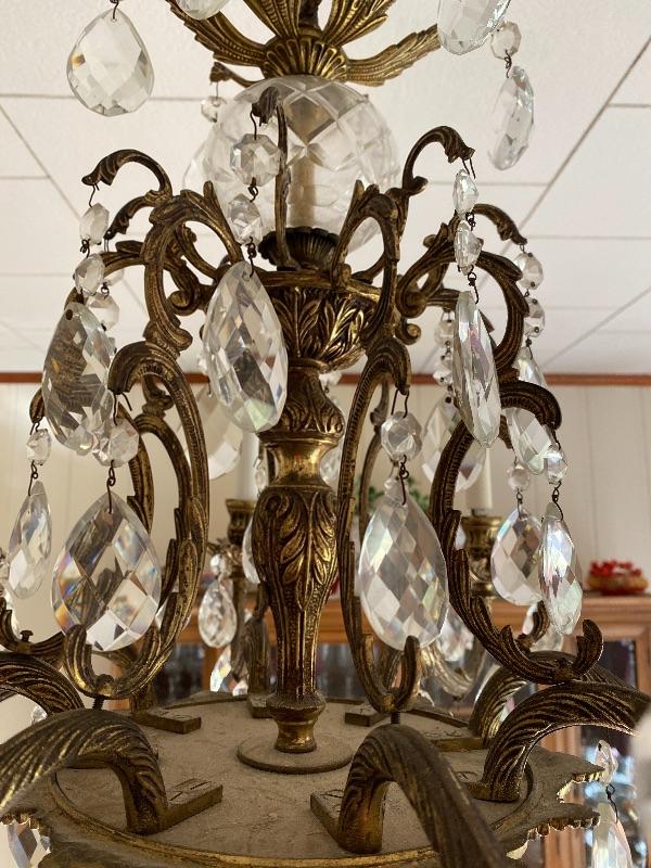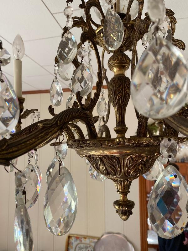 A - Vintage Brass and Crystal Chandelier - Great