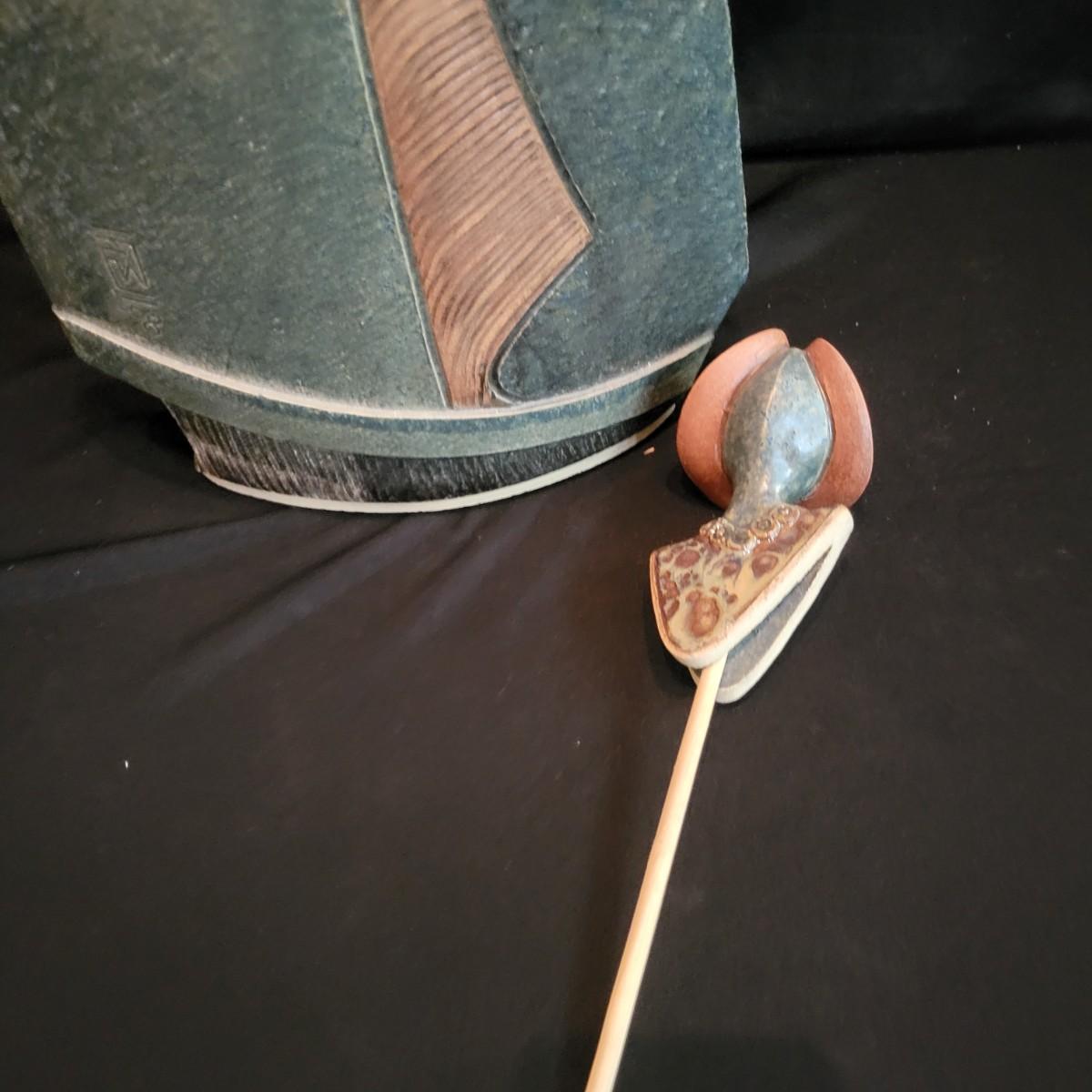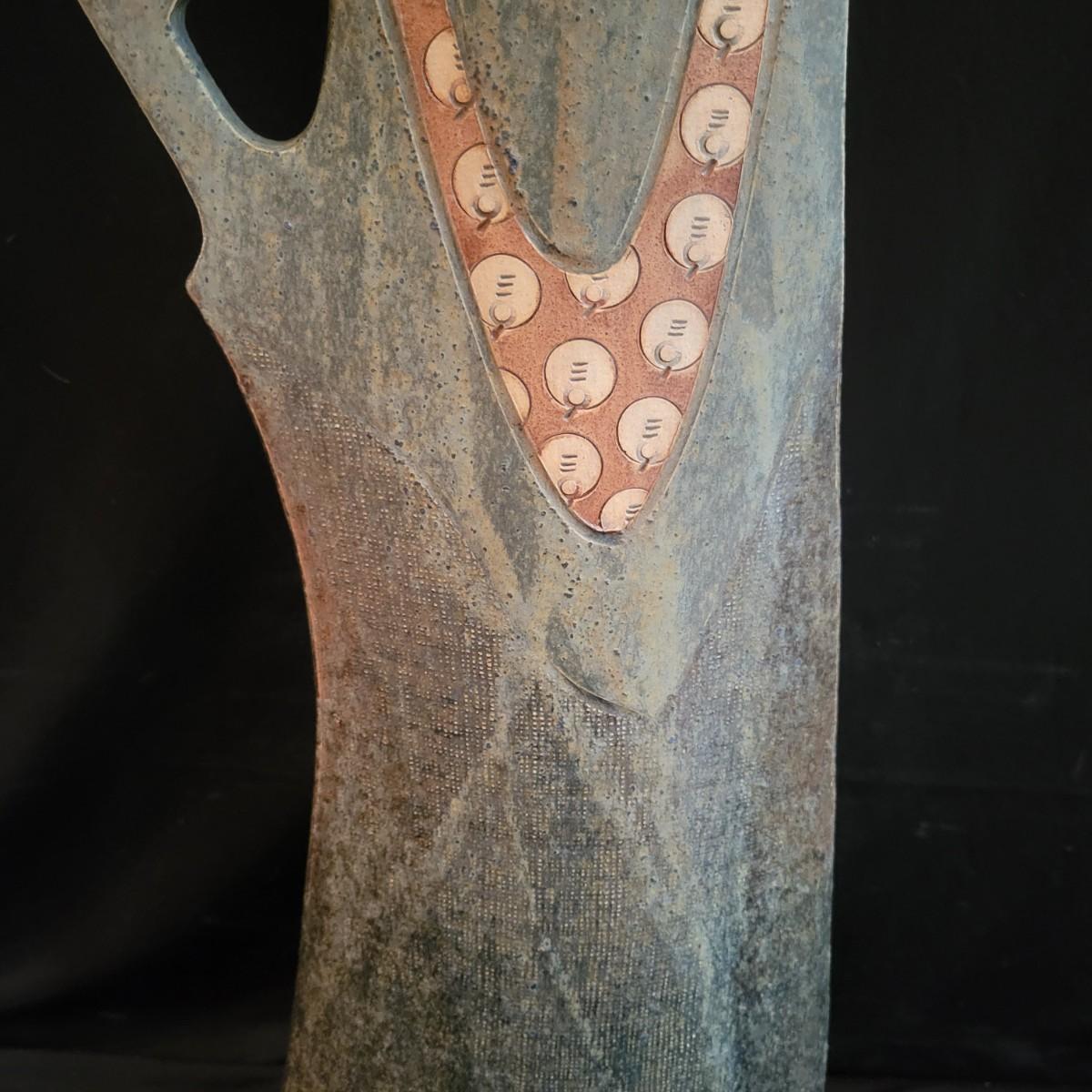 A pair of Fred Weisener ceramic sculptures. According to the artist's website (http://wiesenerstudios.com/new-index#/new-gallery-2/), these are in an art deco style that is reminiscent of the 1920's and are titled "Sophisticated Lady" and "Open Skirt". The heads of the sculptures are removable and the bodies have been counter balanced with sand. Both pieces have felt bottoms and measure approximately 10" x 4" x 29"H. Shipping available. Shipping art can be costly. We suggest contacting our preferred local shipping provider, Postage Express, with dimensions and getting an estimate before bidding: (828) 670-5501 or postageexpress@yahoo.com.