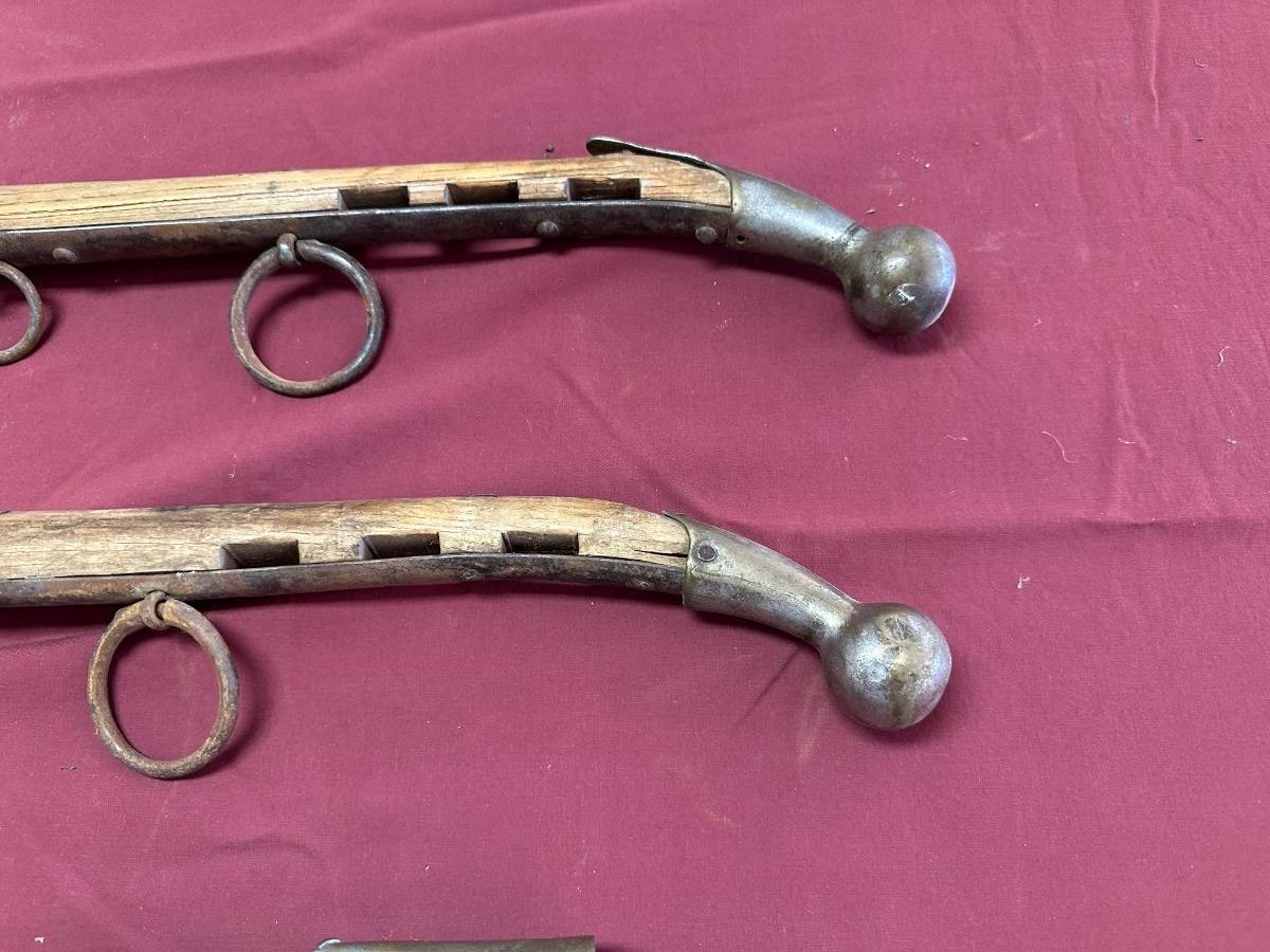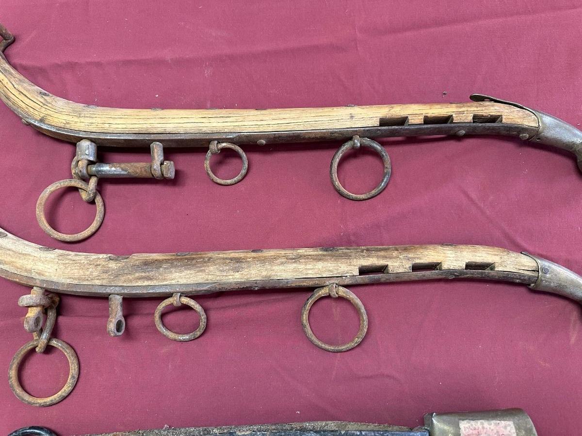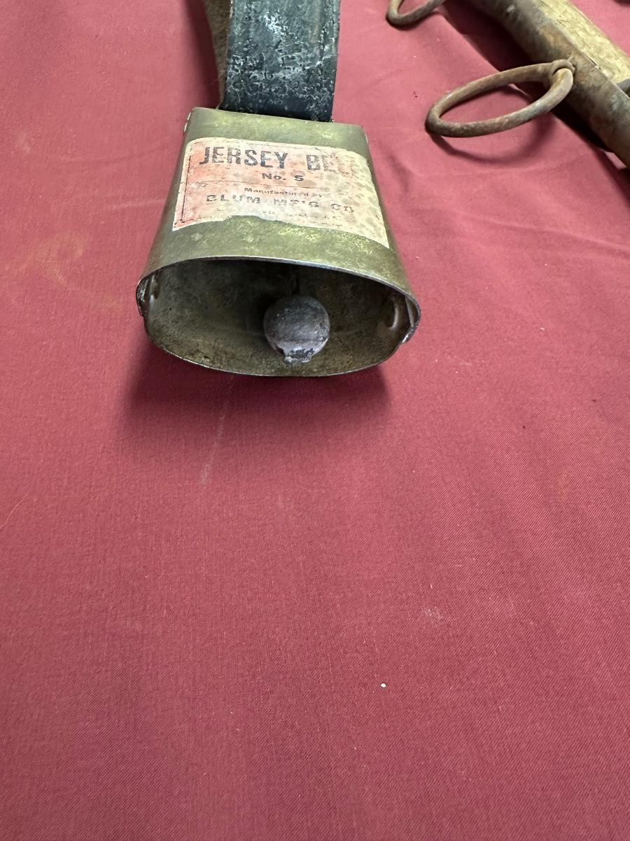 A PAIR OF HORSE HAMES AND A JERSEY BELL NO 5
