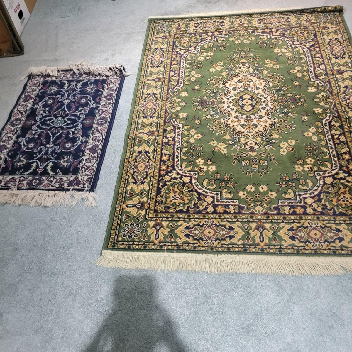 Lot consists of an area rug and a smaller rug in good condition. The larger area rug measures approximately 68" x 50" and is made by Beaulieu of America.. Smaller rug is made by Dalyn and measures approximately 24" x 36" Local pickup only