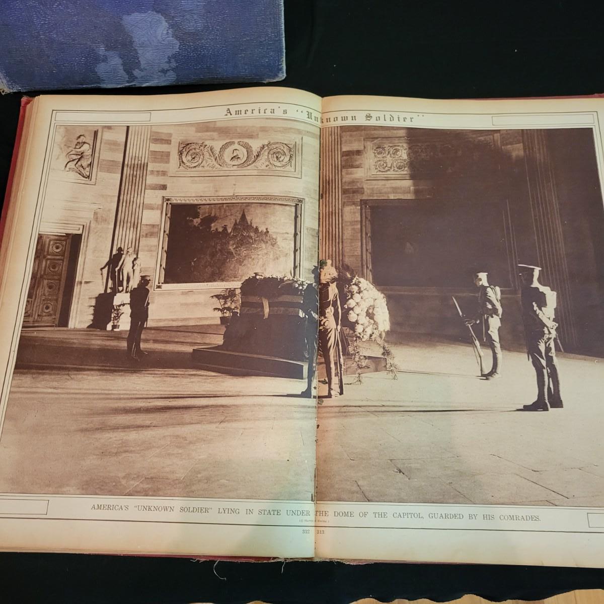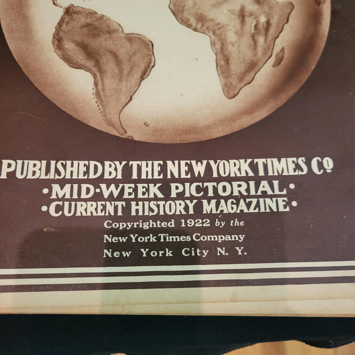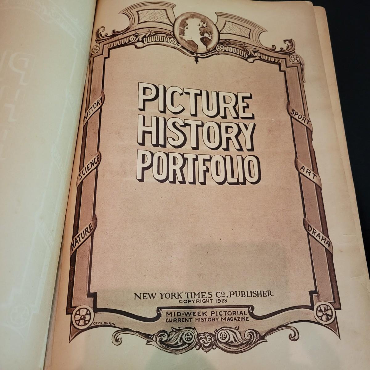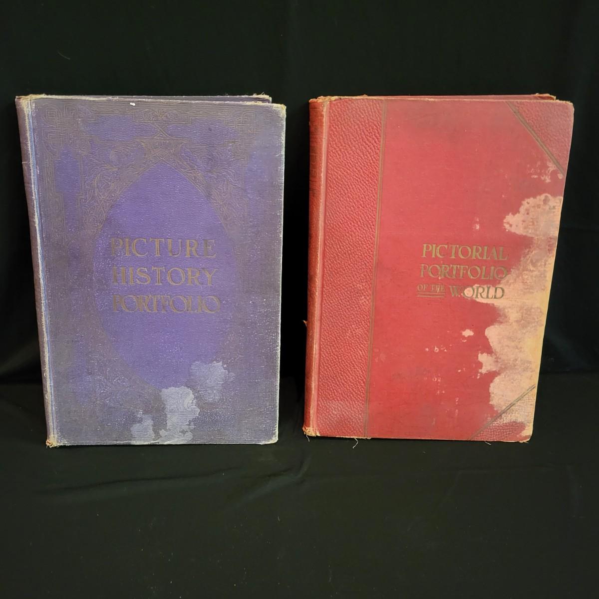 A pair of vintage picture portfolio books. Pictorial Portfolio of the World was published by the New York Times in 1922. Picture History Portfolio was published in 1923 by the New York Times. Both books to show some damage. Shipping available. Shipping can be costly. We suggest contacting our preferred local shipping provider, Postage Express, with dimensions and getting an estimate before bidding: (828) 670-5501 or postageexpress@yahoo.com.