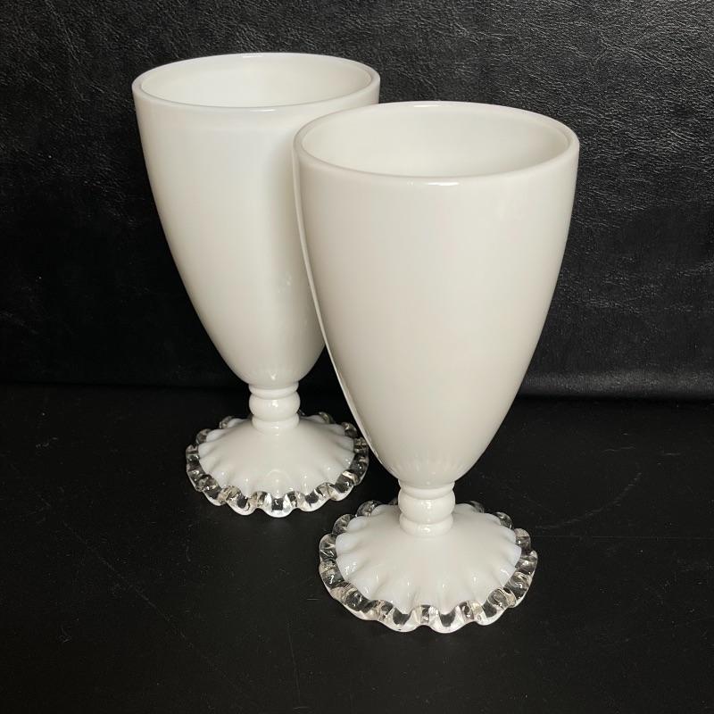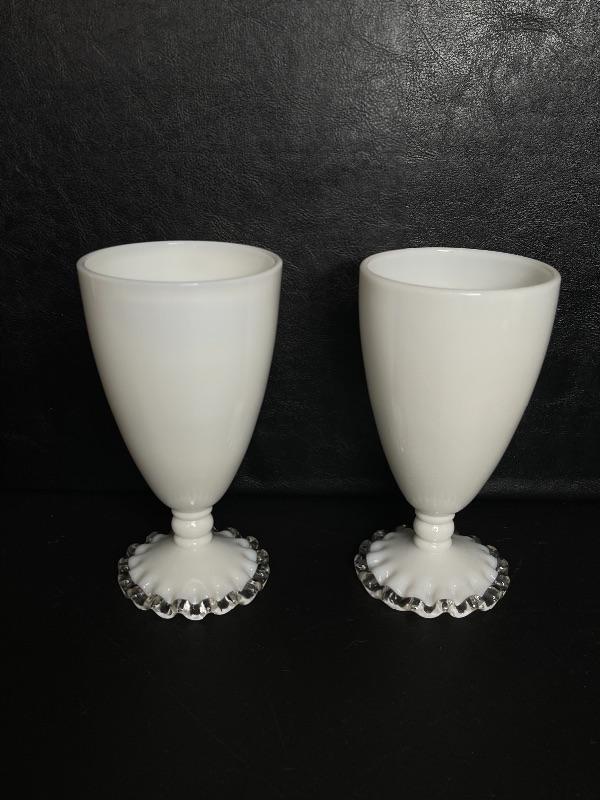 A- Pair of White Silver Crest Fenton Footed Tumblers