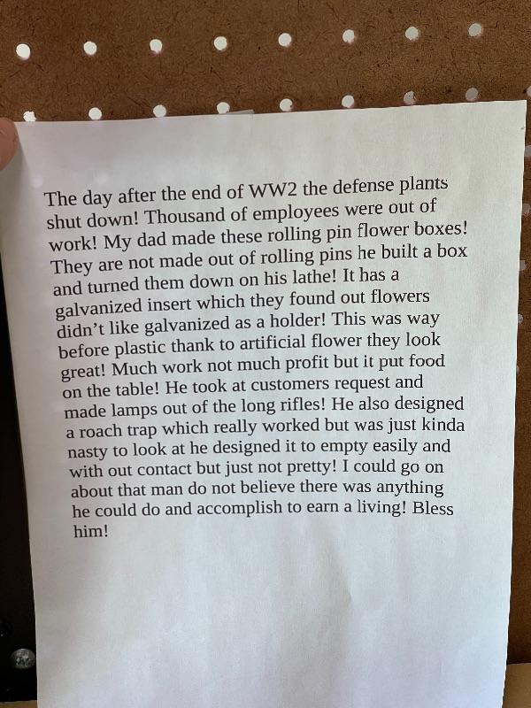 Hand made after WWII. A beautiful piece of ingenuity, creativity, and hard work.