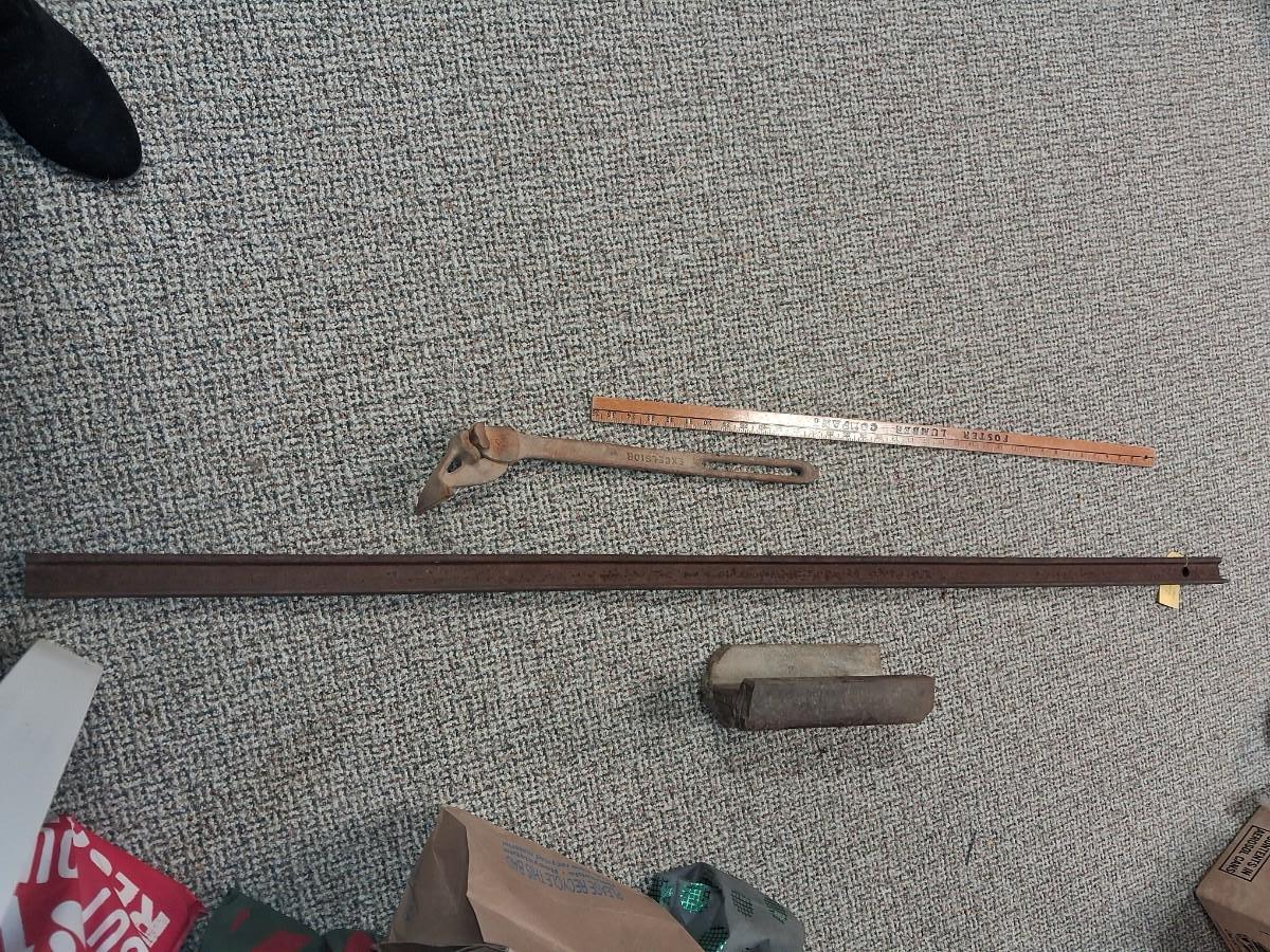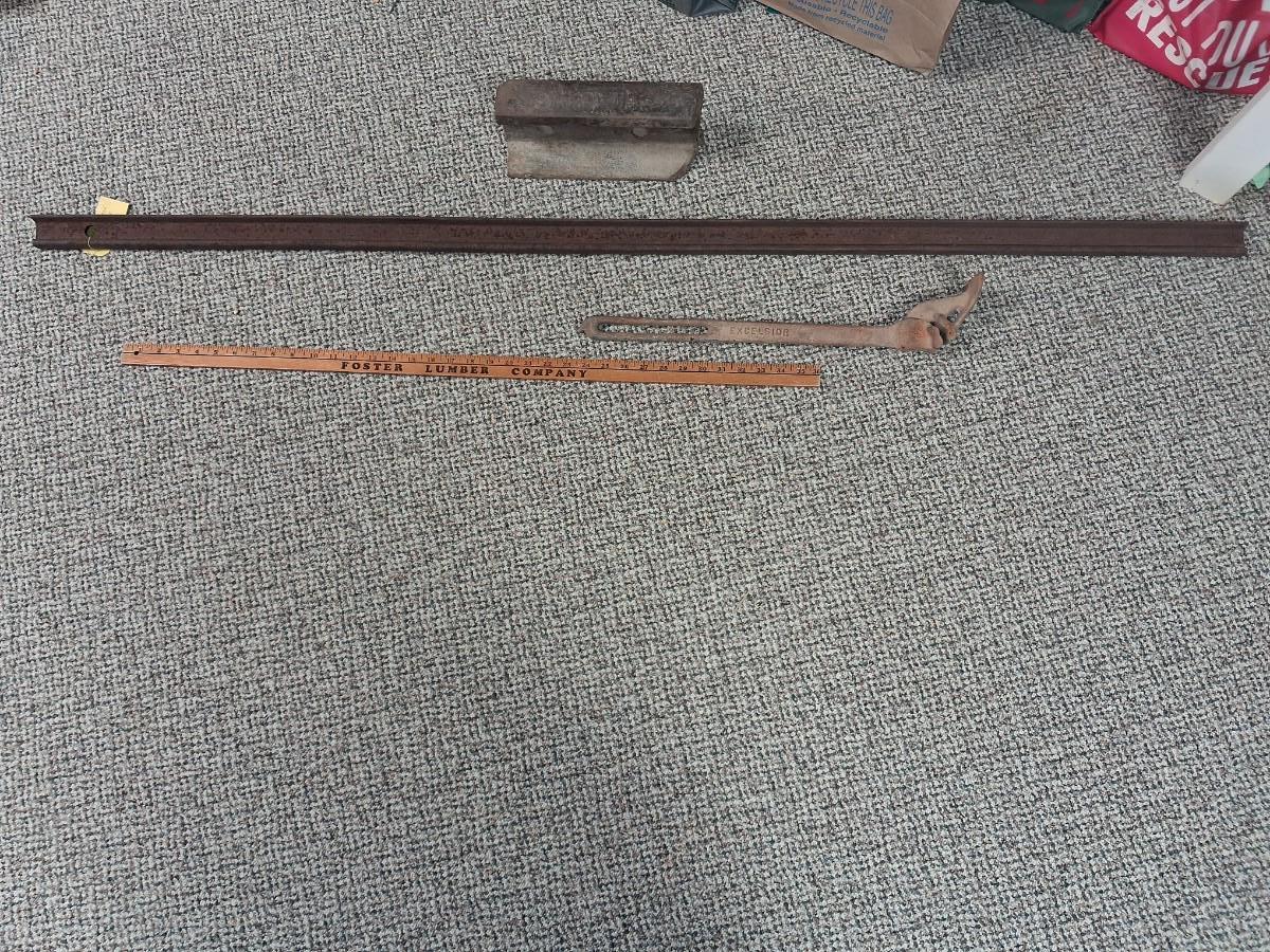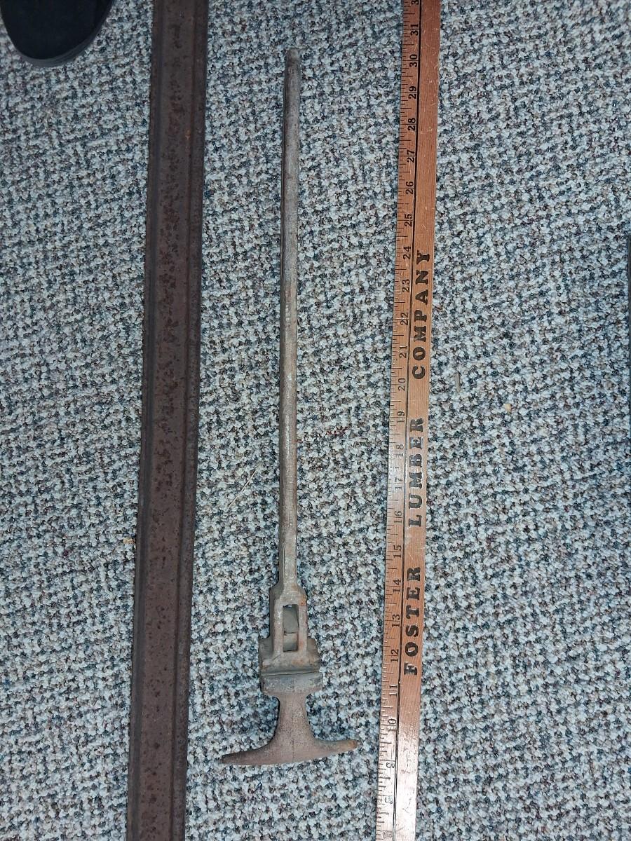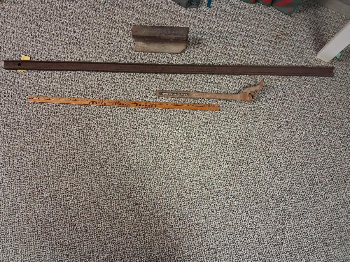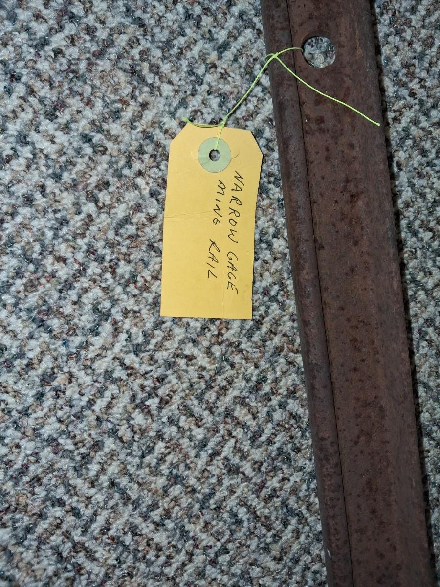 A PIECE OF RAILROAD TRACK, PIECE OF NARROW GAGE MINE RAIL AND MORE