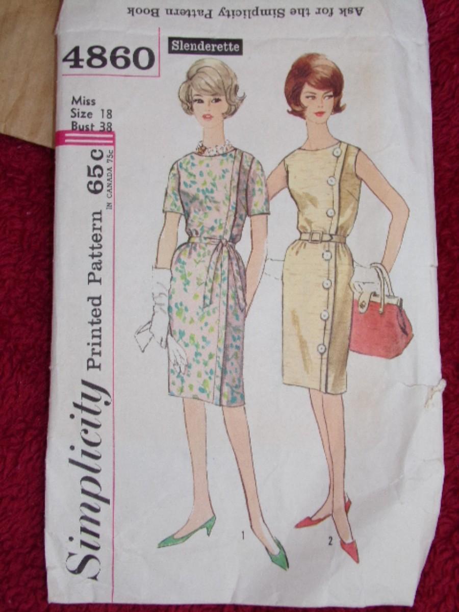 A pile of fabric in a box plus a dress pattern w/fabric & buttons, they had a plan.
