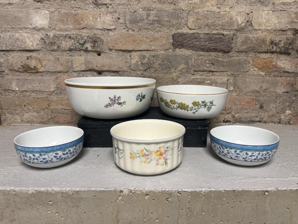 Spode Stafford Flowers bowl set, Villeroy & Boch Riviera casserole and pair of Mikasa small serving bowls